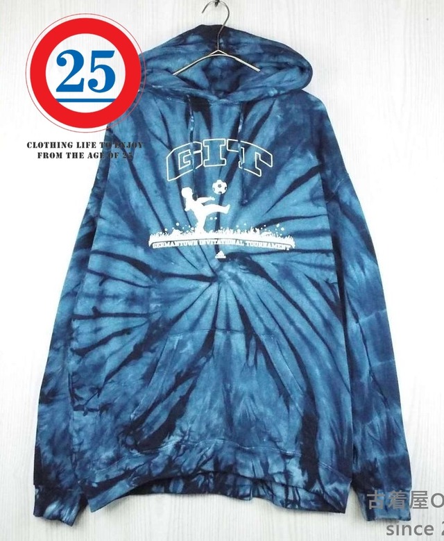 【アメリカ古着】【リメイク】TIE DYE CLOTHING COMPANY adidas アディダス プルオーバーパーカー フーテッド 長袖スウェット Lサイズ(肩幅62cm) タイダイ染 ブルー【仙台倉庫】USメンズ古着 ビッグサイズ