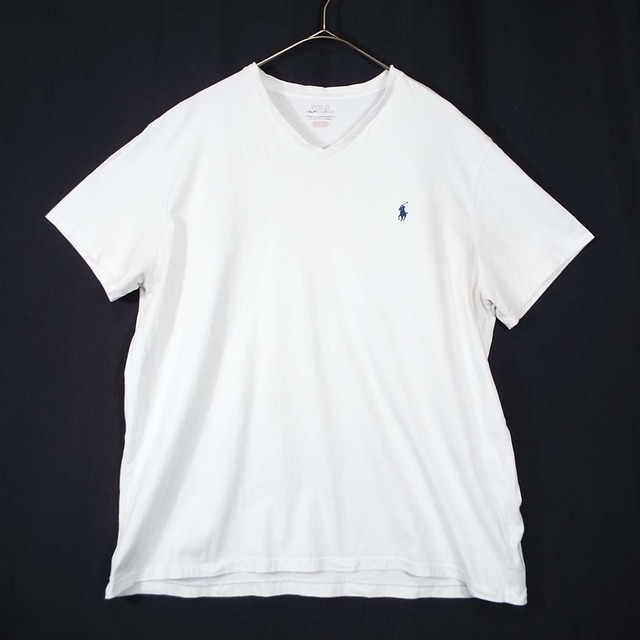【SOLD OUT】◎肩幅51cm◎XLサイズ|POLO RALPH LAUREN ラルフローレン 無地 ワンポイント 刺繍ロゴ Vネック 半袖Tシャツ ホワイト US古着【湘南倉庫】メンズ 白Tシャツ