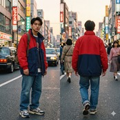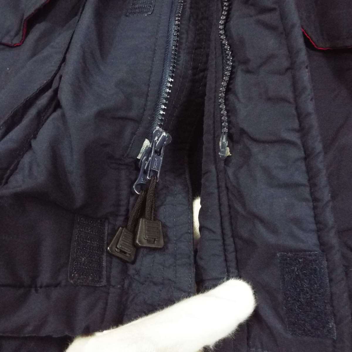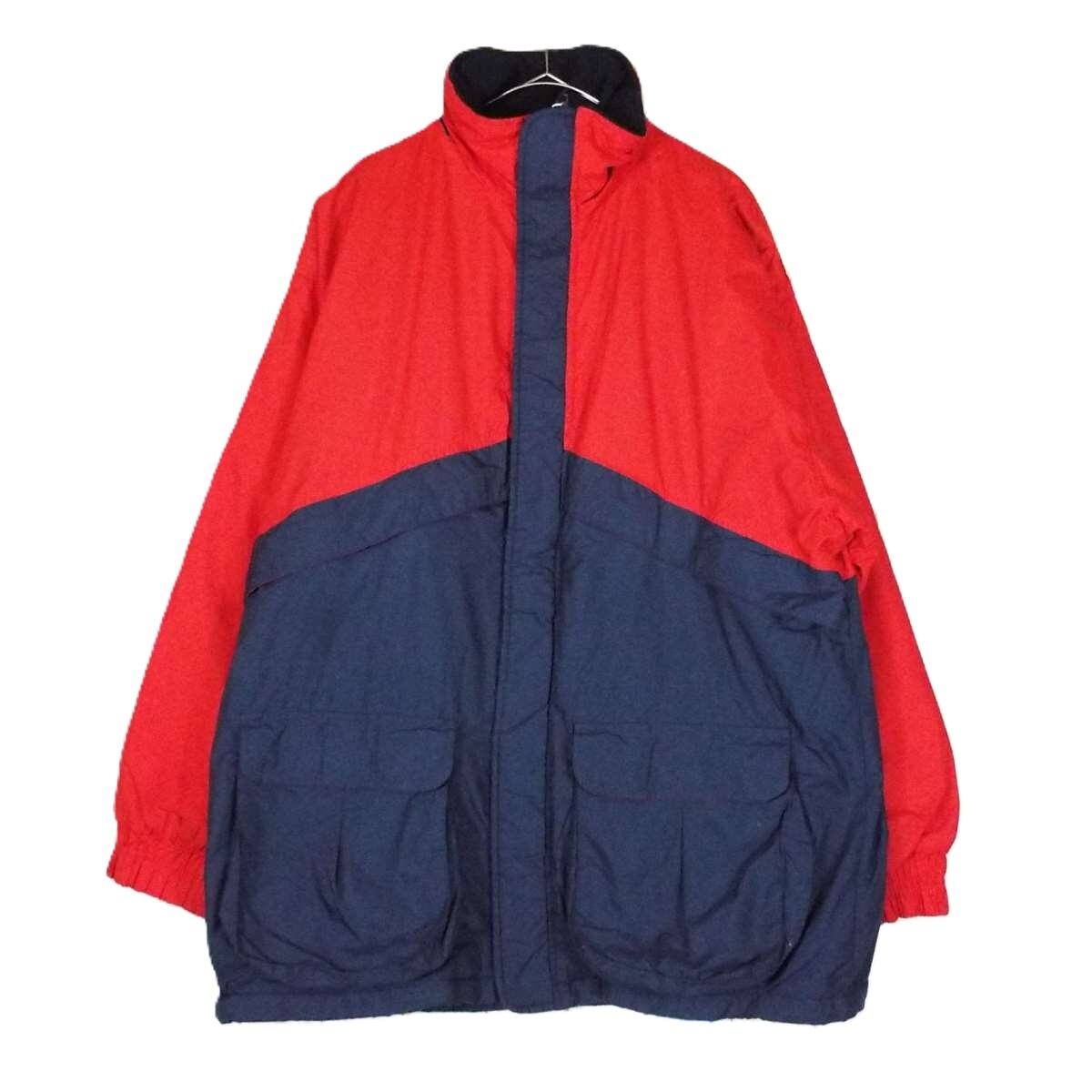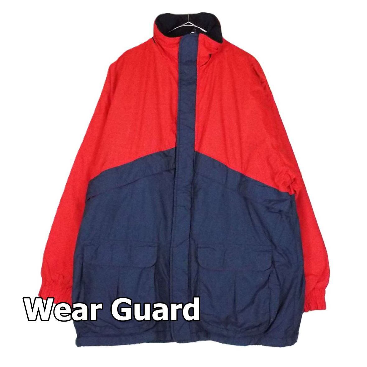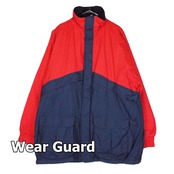 【90'sヴィンテージ】Wear Guard ウェアーガード バイカラー 収納フード 裏フリース 中綿入り ナイロン 長袖ブルゾンジャケット Lサイズ(肩幅61cm)レッド・ネイビー【湘南倉庫】USメンズブランド古着 1990年代