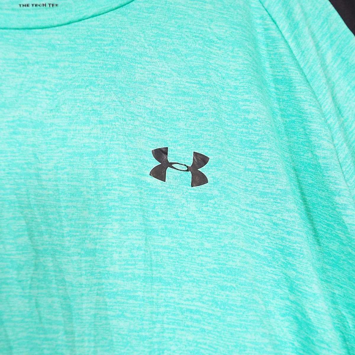 【裄丈58cm】【速乾素材】UNDER AEMOUR アンダーアーマー ワンポイントロゴ 霜降り 半袖Tシャツ 5XLサイズ ミントグリーン ポリエテル100%【湘南倉庫】USメンズブランド古着
