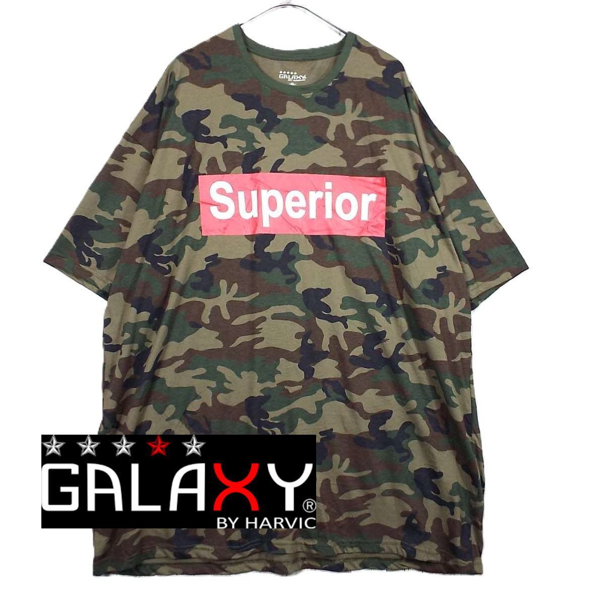 【肩幅67cm】【ボックスロゴ・カモフラ】GALAXY BY HARVIC ギャラクシ‐・バイ・ハービック 迷彩 プリント 半袖Tシャツ 5XLサイズ グリーン コットン・ポリエステル(60/40)【湘南倉庫】USメンズ古着 ゆるだぼ T70