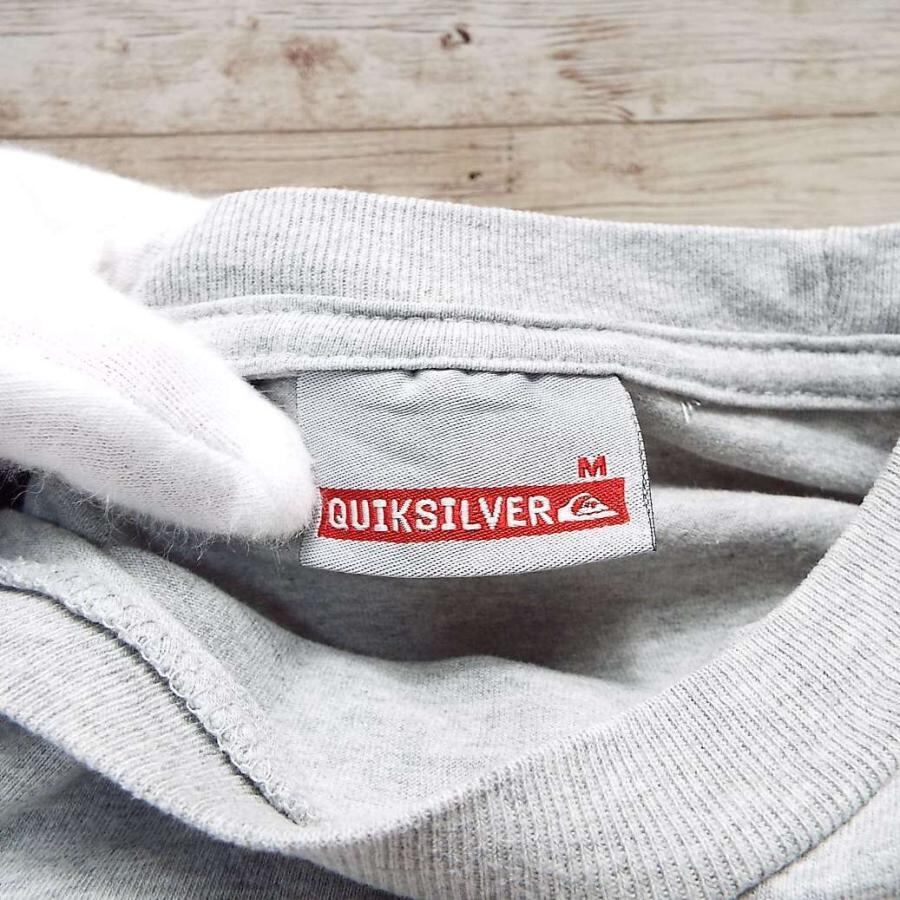 ◎肩幅47cm◎【ブランドロゴ】QUIKSILVER クイックシルバー 両面 ラバープリント クルーネック プリント 半袖Tシャツ Mサイズ ホワイト コットン100% 【湘南倉庫】USA古着 サーフブランド T5
