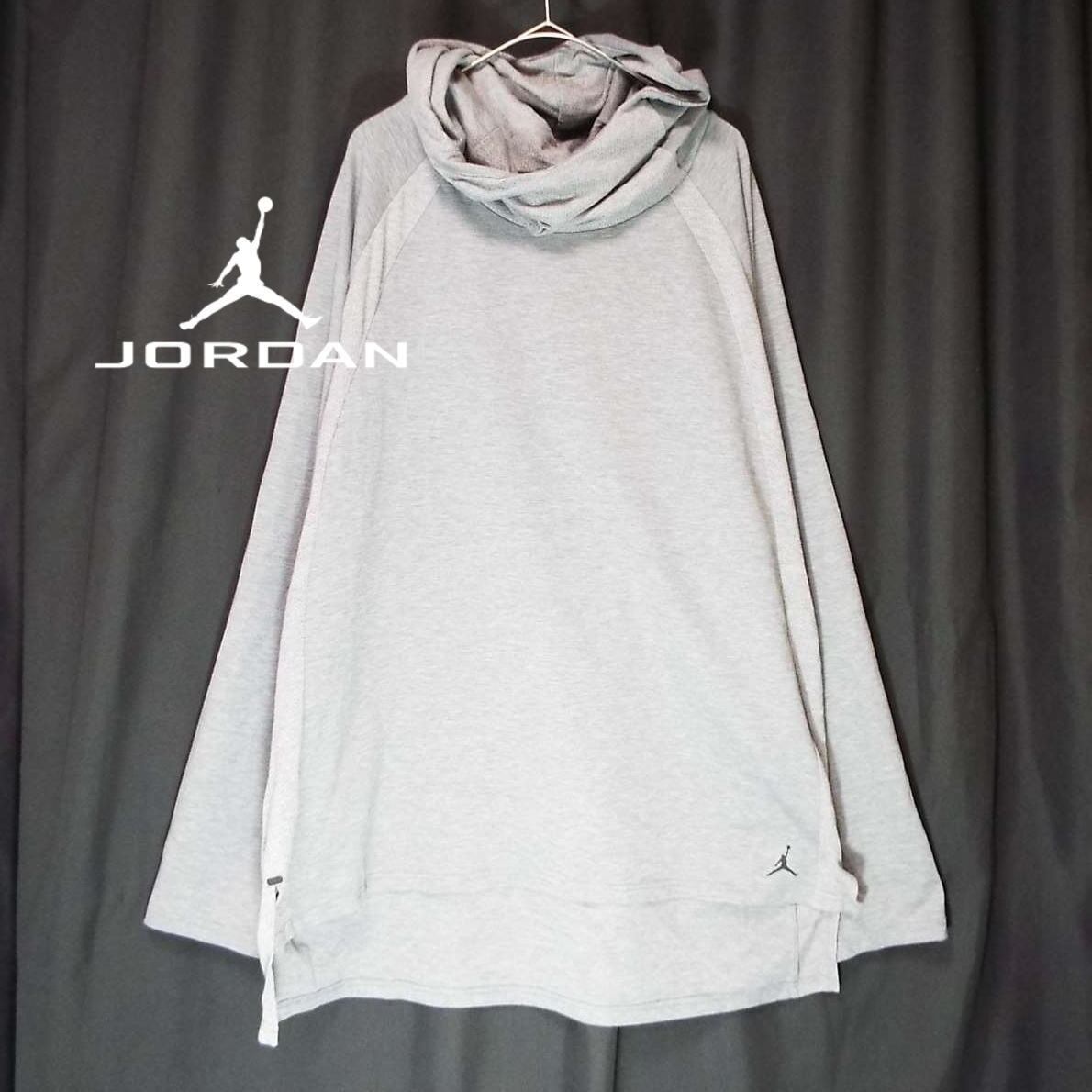 【身幅67cm】JORDAN BRAND ジョーダンブランド ビッグフード ハイネック調 長袖スウェットトレーナー 4XLサイズ ライトグレー ポリエステル・レーヨン混紡 【湘南倉庫】USアメリカ古着 ゆるだぼ 12356966