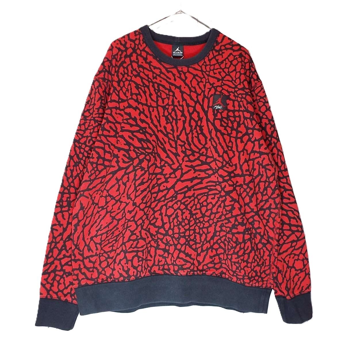 【肩幅56.5cm】JORDAN BRAND ジョーダンブランド セメント総柄 長袖トレーナー XXLサイズ レッド・ブラック コットン・ポリエステル(76/24) 【湘南倉庫】USアメリカ メンズ古着 17002721
