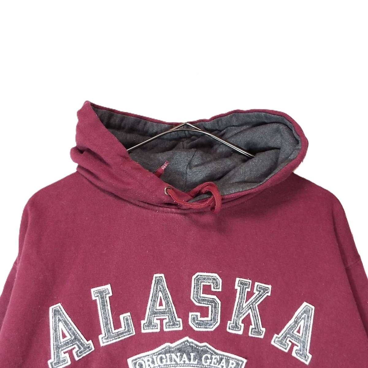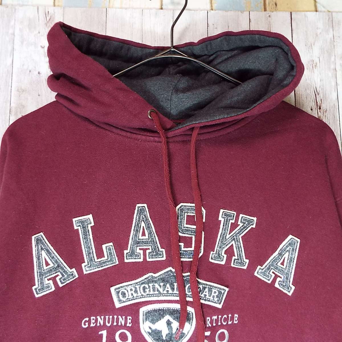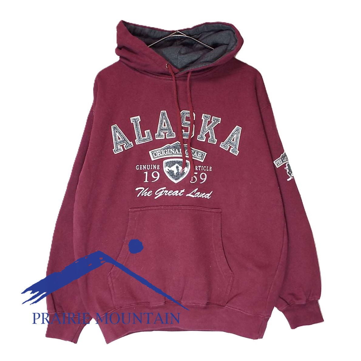 【パッチワークロゴ】PRAIRIE MOUNTAIN プレーリーマウンテン ALASKA アラスカ 刺繡 長袖スウェット パーカー Sサイズ(肩幅52cm)ワインレッド コットン・ポリエステル混紡(80/20)【湘南倉庫】USアメリカ メンズ古着