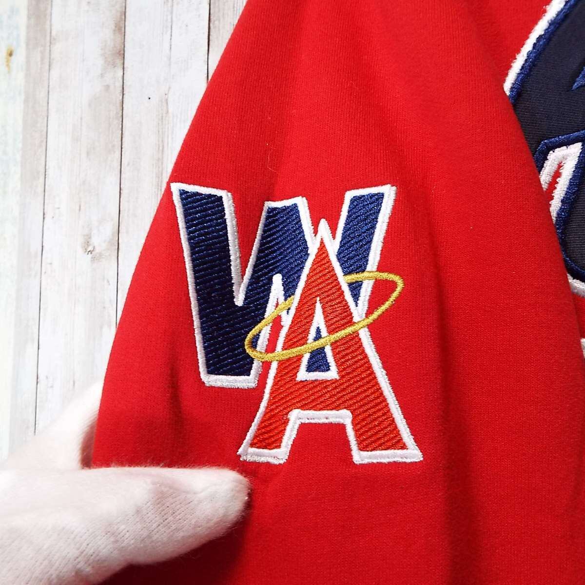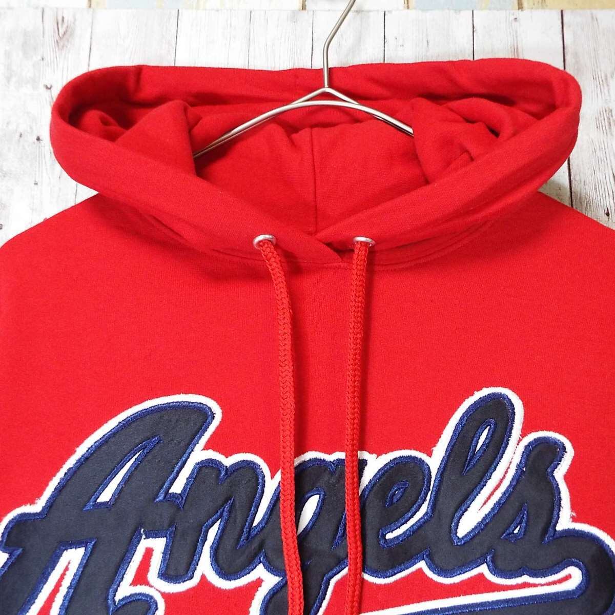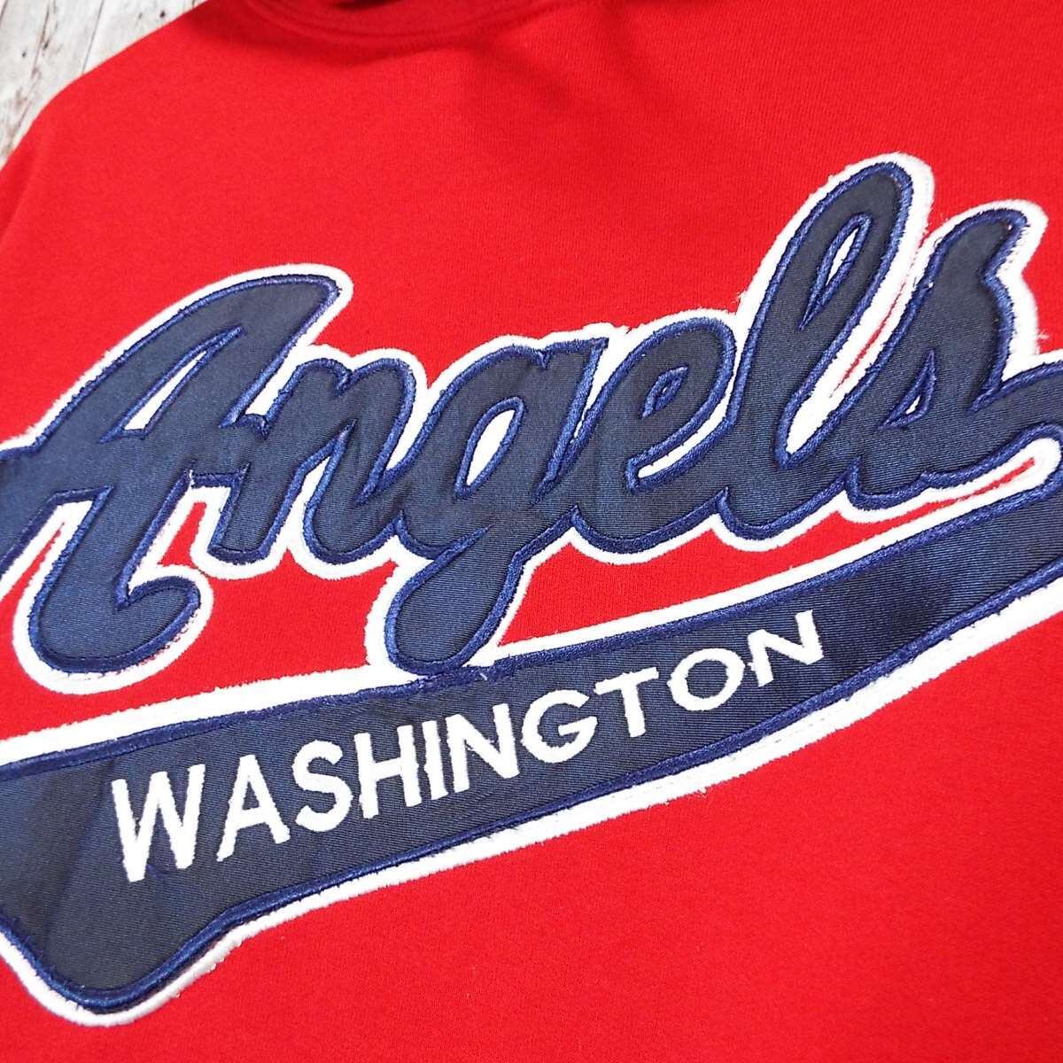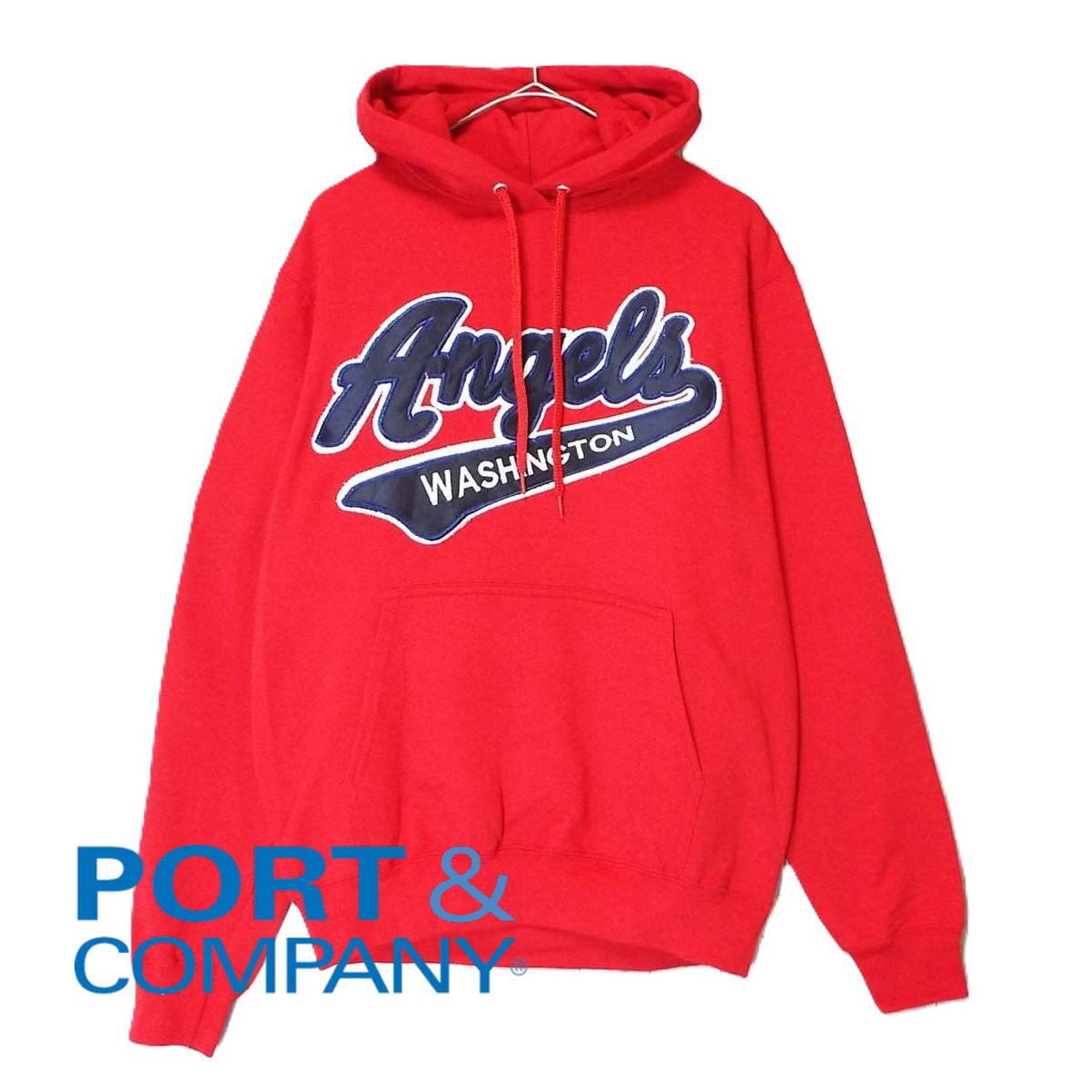 【肩幅46cm】PORT&COMPANY ポートアンドカンパニー Angels WASHINGTON エンジェルス・ワシントン パッチロゴ 長袖パーカー Sサイズ レッド コットン・ポリエステステル(50/50) 【湘南倉庫】USアメリカ メンズ古着 17001793