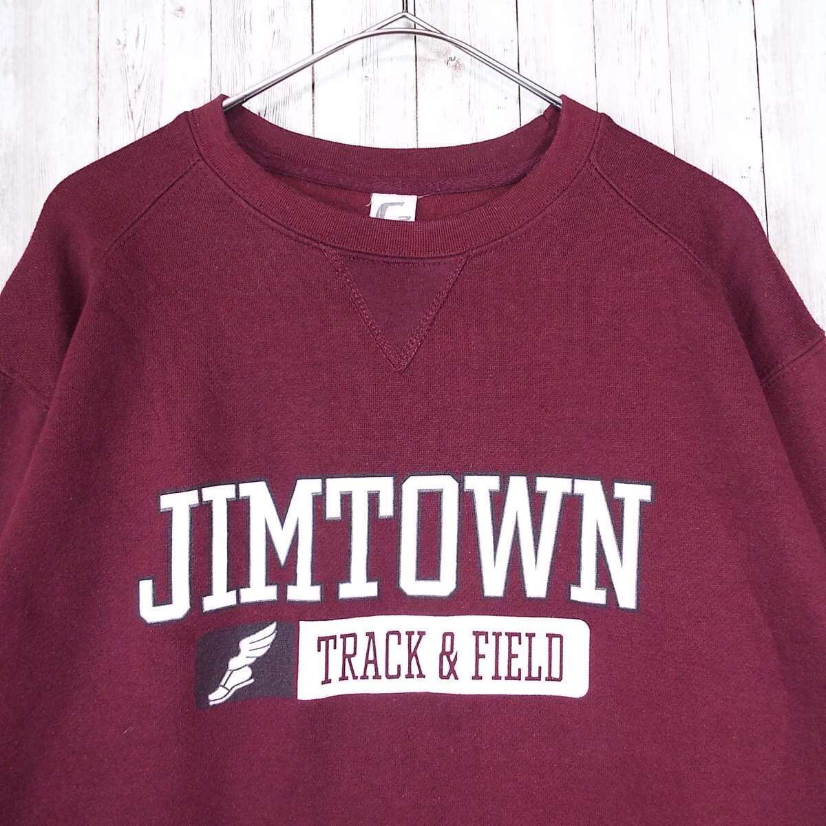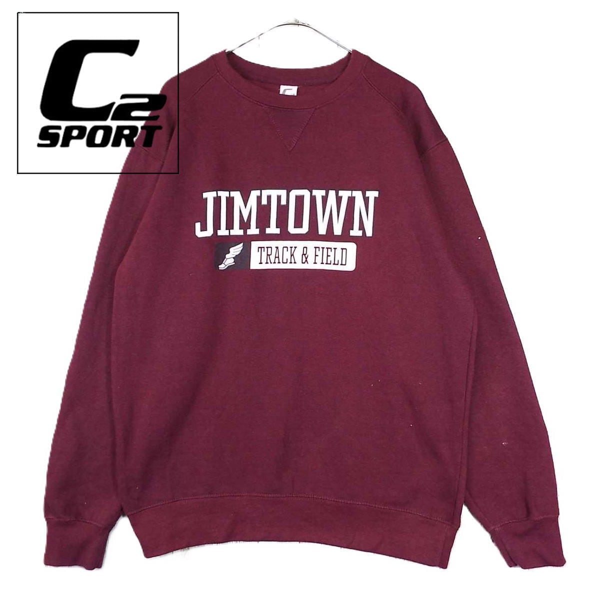 【前Vガゼット】C2 SPORT シーツースポーツ JIMTOWN TRACK&FIELD ジムタウン トラック&フィールド クルーネック 長袖パーカー Mサイズ (肩幅54cm)ワインレッド コットン・ポリエステル(60/40) 【湘南倉庫】USアメリカ メンズ古着