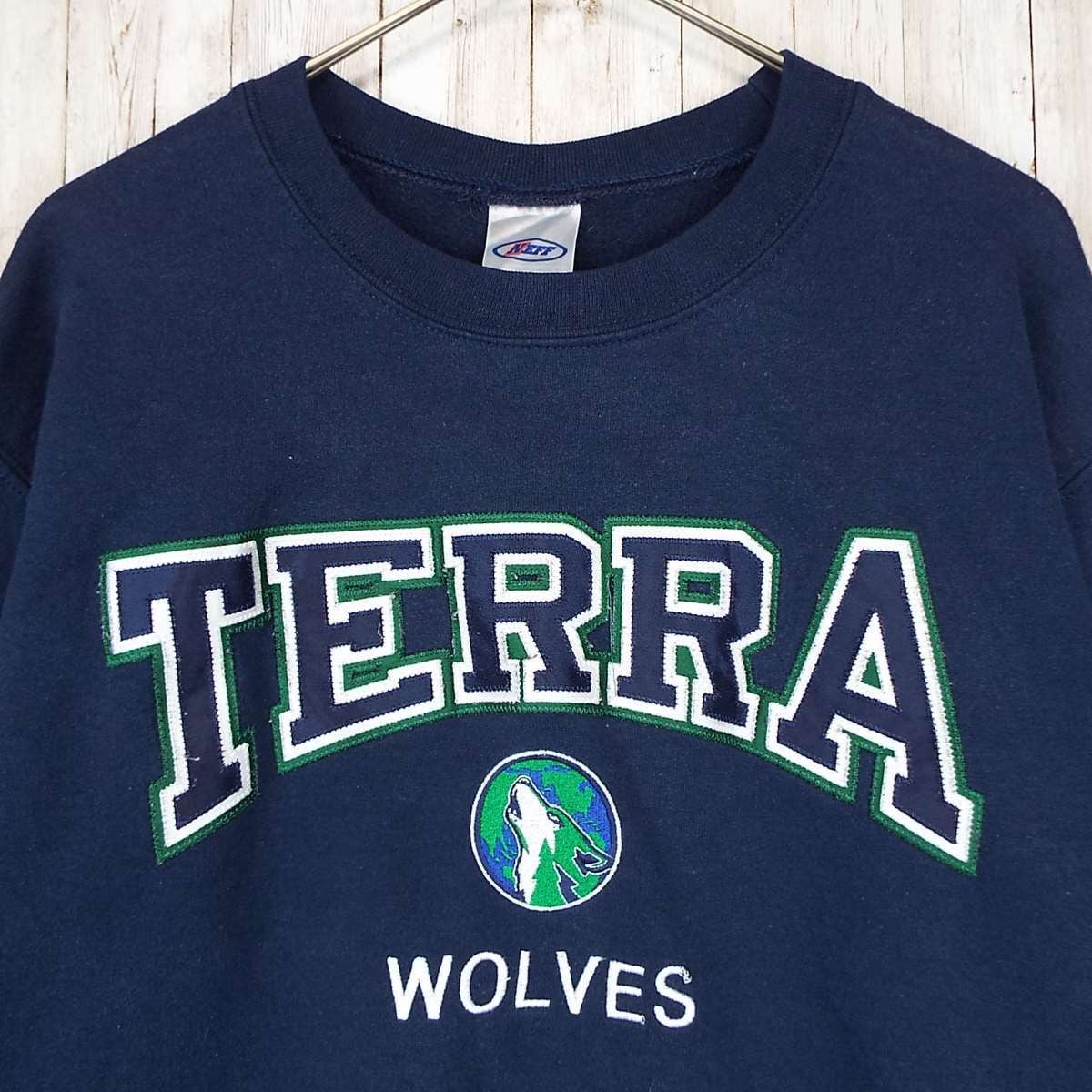 【3Dパッチロゴ&丈短め】NEFF ネフ TERRA Wolves Athletics オオカミ 狼 ウルフ 刺繍パッチロゴ 長袖スウェットトレーナー Sサイズ(肩幅52cm)ネイビー コットン・ポリエステル(50/50) 【湘南倉庫】USアメリカブランドフルギ