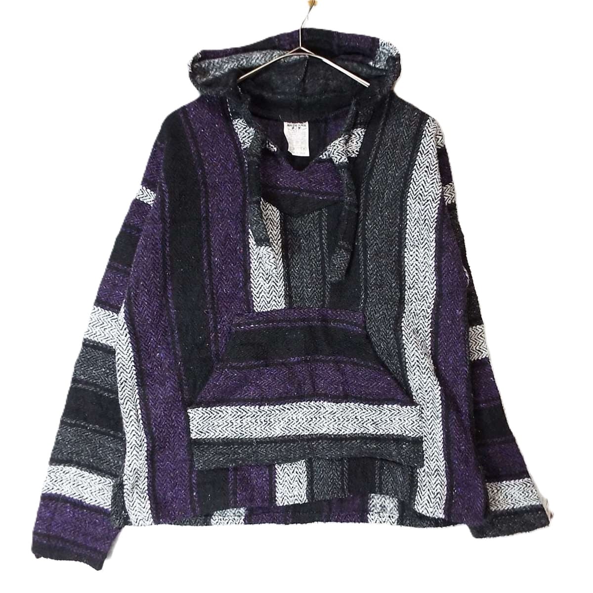 【肩幅54cm】本場メキシコ製 ARTILANA ネイティブ柄 太紐 厚手 カラフル メキシカンパーカー メキパ オーバージャケット Sサイズ マルチカラー【湘南倉庫】メンズ古着
