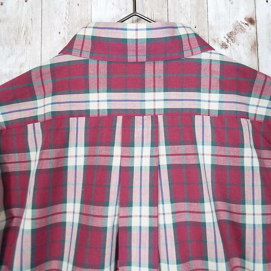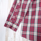 【黒タグ】美品 80's Eddie Bauer エディー・バウアー チェック柄 ボタンダウン 長袖シャツ Mサイズ(肩幅47cm)ワインレッド【湘南倉庫】ヴィンテージメンズ古着