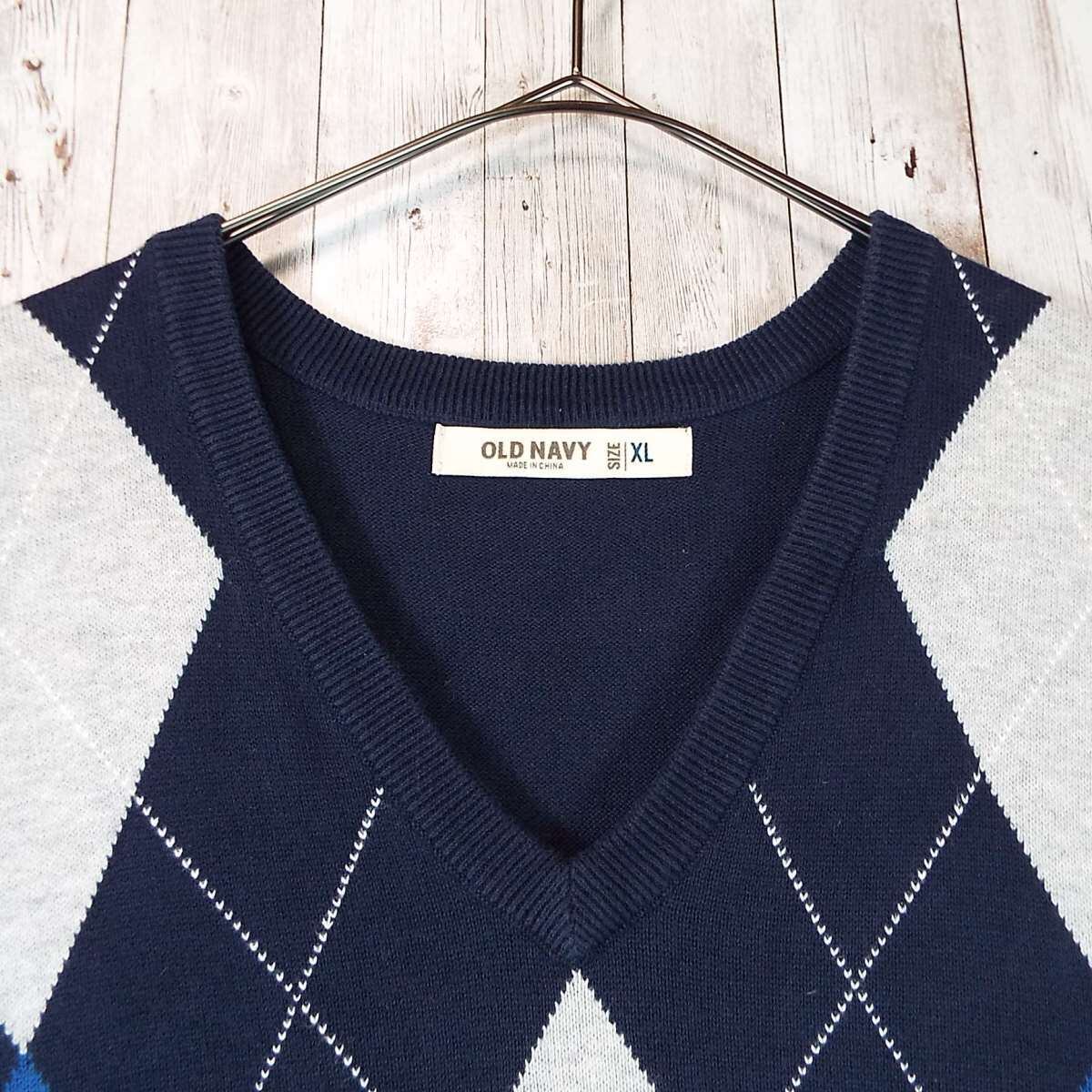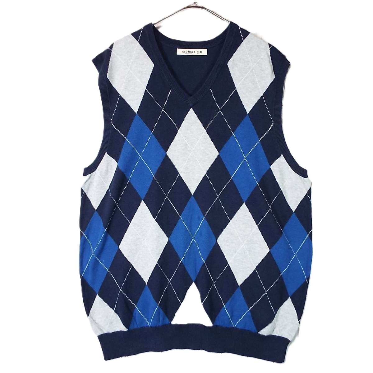【アーガイル柄】OLD NAVY オールドネイビー ニットベスト XLサイズ(肩幅46cm)コットン100% 【湘南倉庫】アメリカ USブランド古着