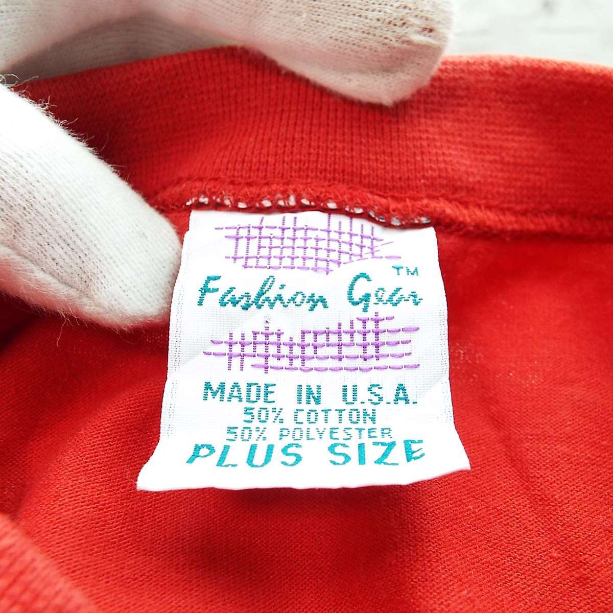 【MADE IN USA】アメリカ製 Fashion Gear ファッションギア 無地 長袖Tシャツ(ロンT)PLUS SIZE(3-4XL肩幅67cm)レッド コットン・ポリウレタン混紡 【湘南倉庫】ゆったり ビッグサイズ USメンズブランド古着