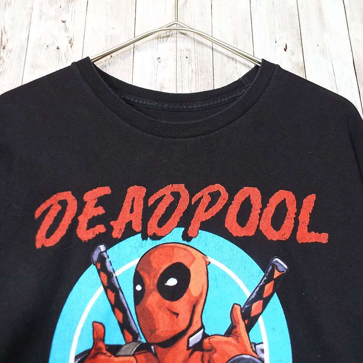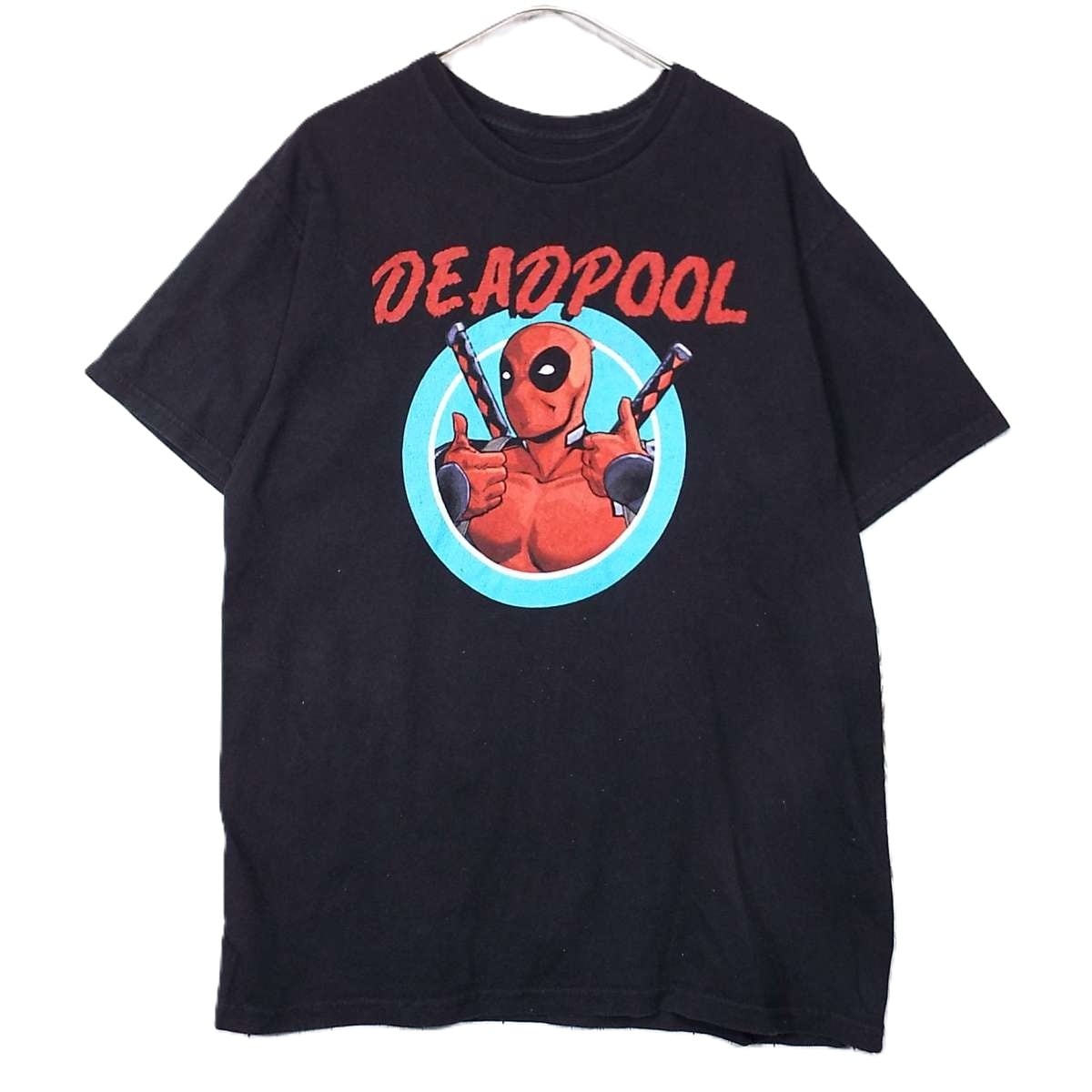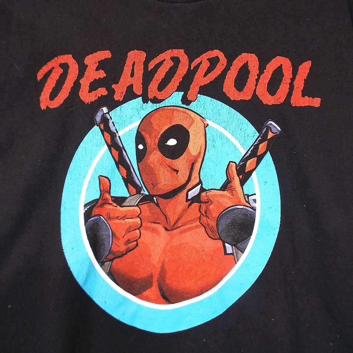 【マーベル公式グッズ】MARVEL DEADPOOL デッドプール キャラクター カラープリント 半袖Tシャツ Mサイズ(肩幅50cm)ブラック【湘南倉庫】USメンズブランド古着
