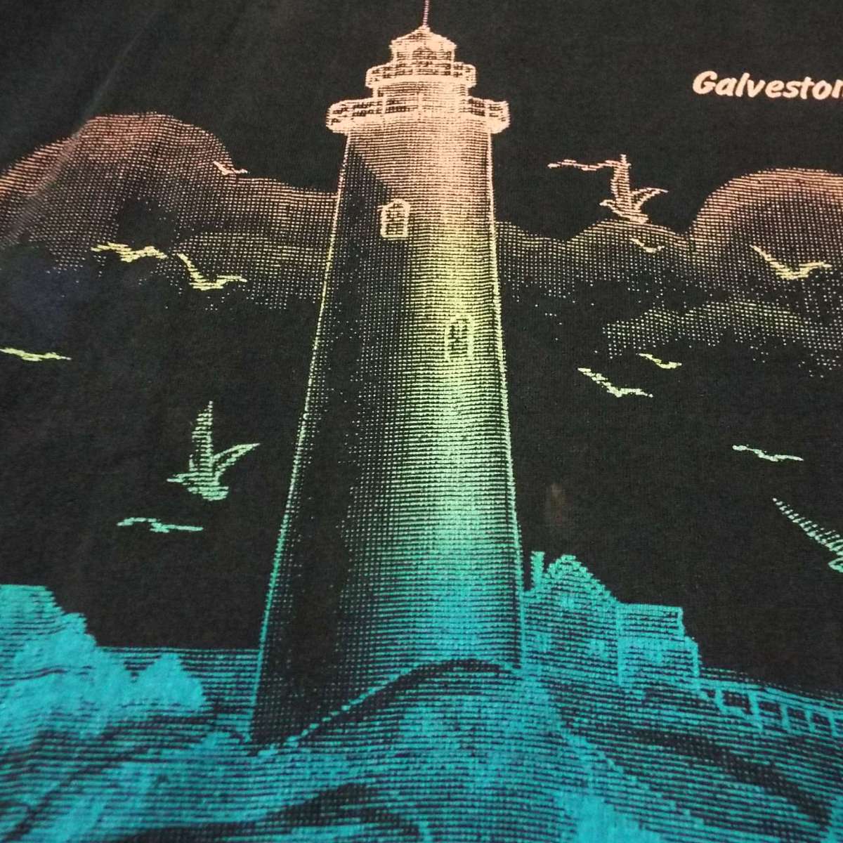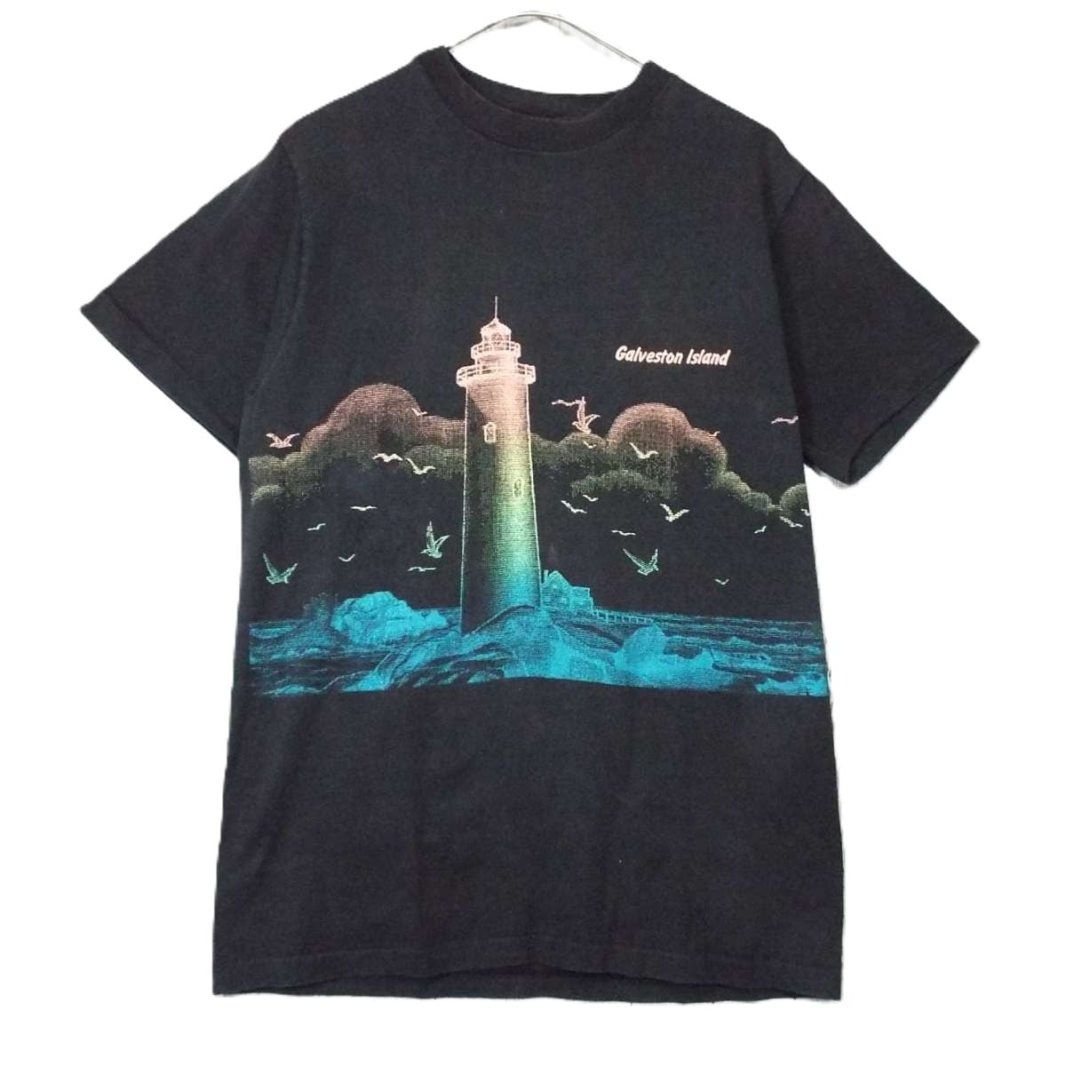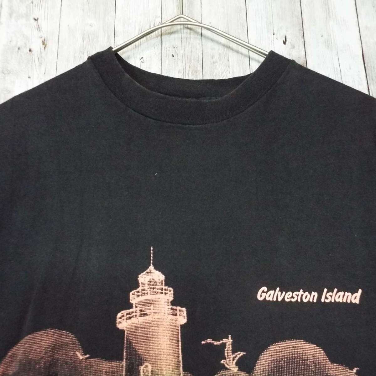 【ヴィンテージ古着】Sherry's BEST シェリーズ・ベスト Galveston Island ギャルベストン島・テキサス州 グラデーションデザイン 両面プリント 半袖Tシャツ Sサイズ(肩幅41cm)ブラック PRESHRUNK コットン100%【湘南倉庫】USメンズブランド古着