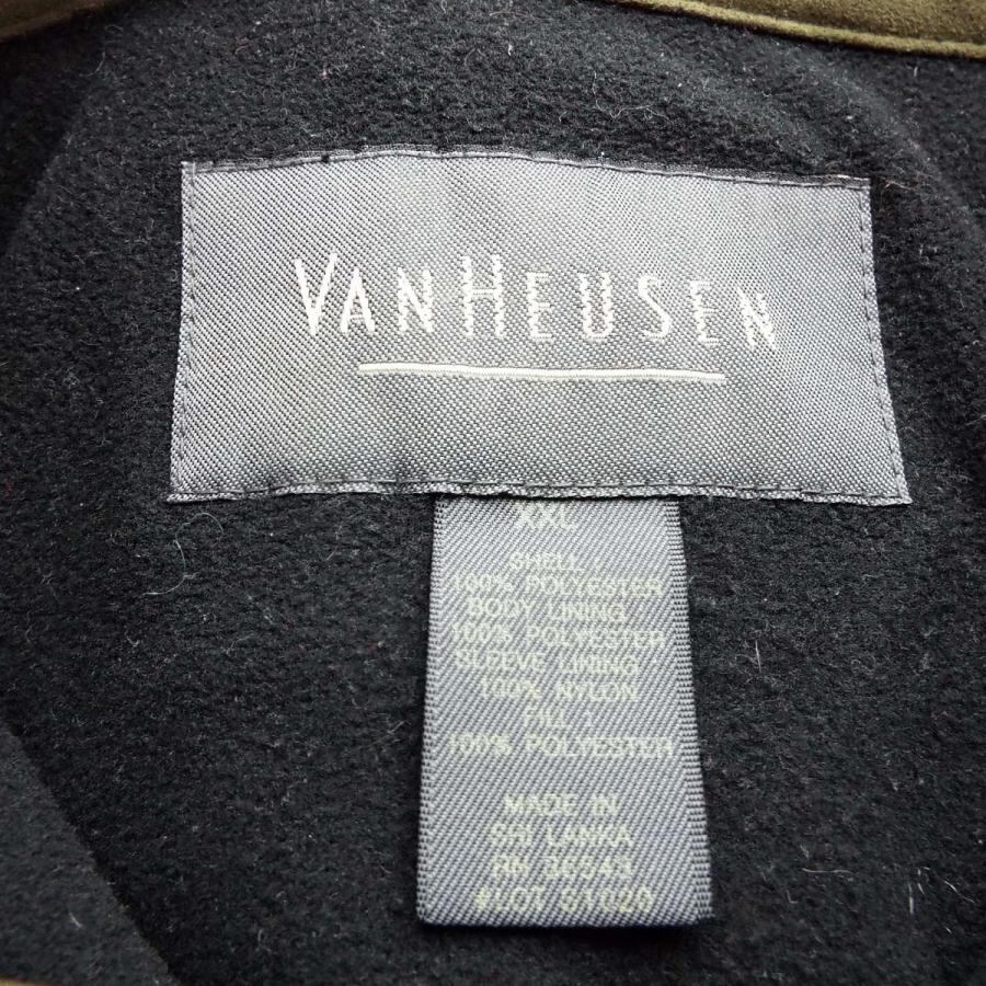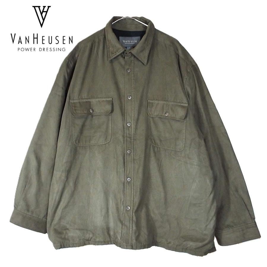 【裏フリースのフェイクレザーシャツ】VAN HEUSEN バンヒューゼン 無地 プレーン ポケット付き 長袖シャツ XXLサイズ(肩幅cm)オリーブグリーン【湘南倉庫】USメンズブランド古着
