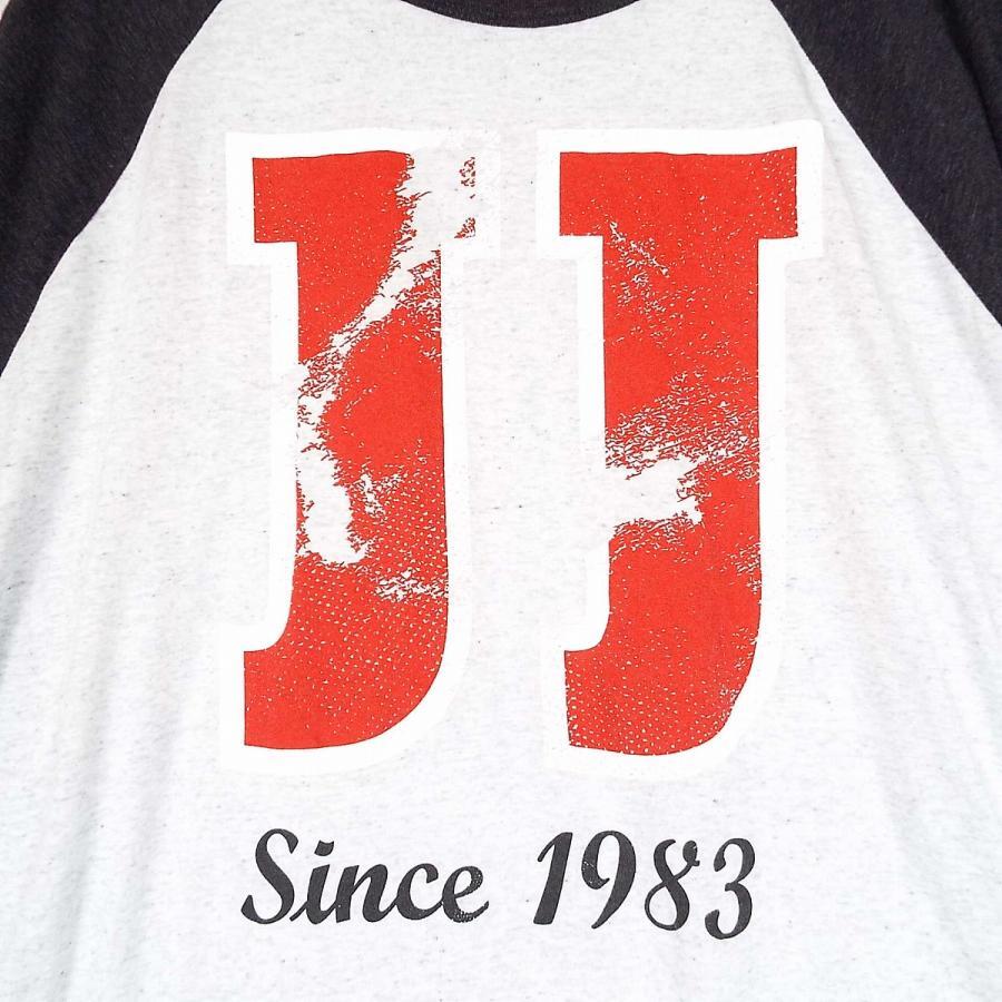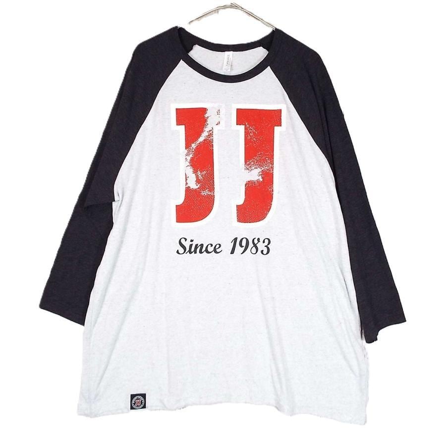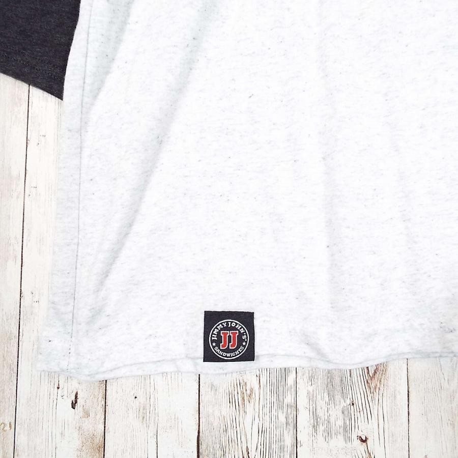 【ビックロゴ】canvas キャンバス JIMMY JOHN'S ジミージョン JJ since 1983 コンビカラー ラグラン 8分袖袖 長袖Tシャツ(ロンT)2XLサイズ(裄丈75cm・身幅63cm)ライトグレー・ブラック【湘南倉庫】USメンズブランド古着