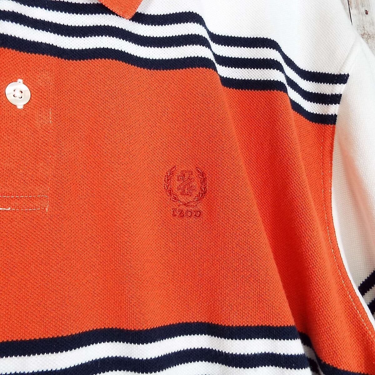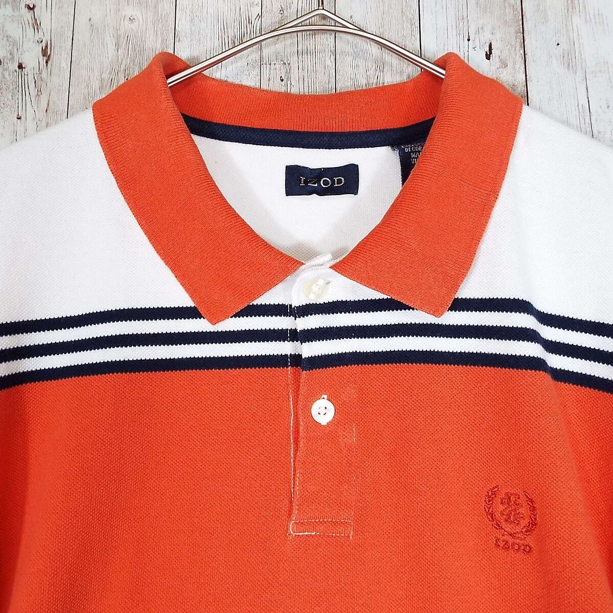 ベトナム製 IZOD(アイゾッド)ボーダー柄 鹿の子 半袖ポロシャツ コットン100% XLサイズ オレンジ・ホワイト【湘南倉庫】USメンズ古着 12341870