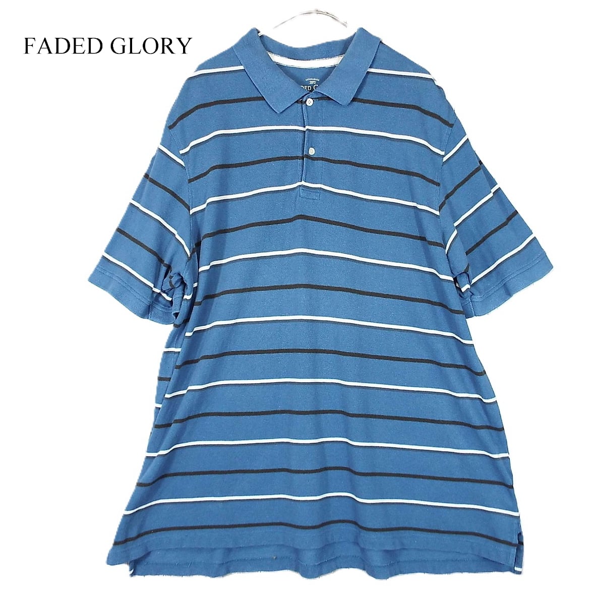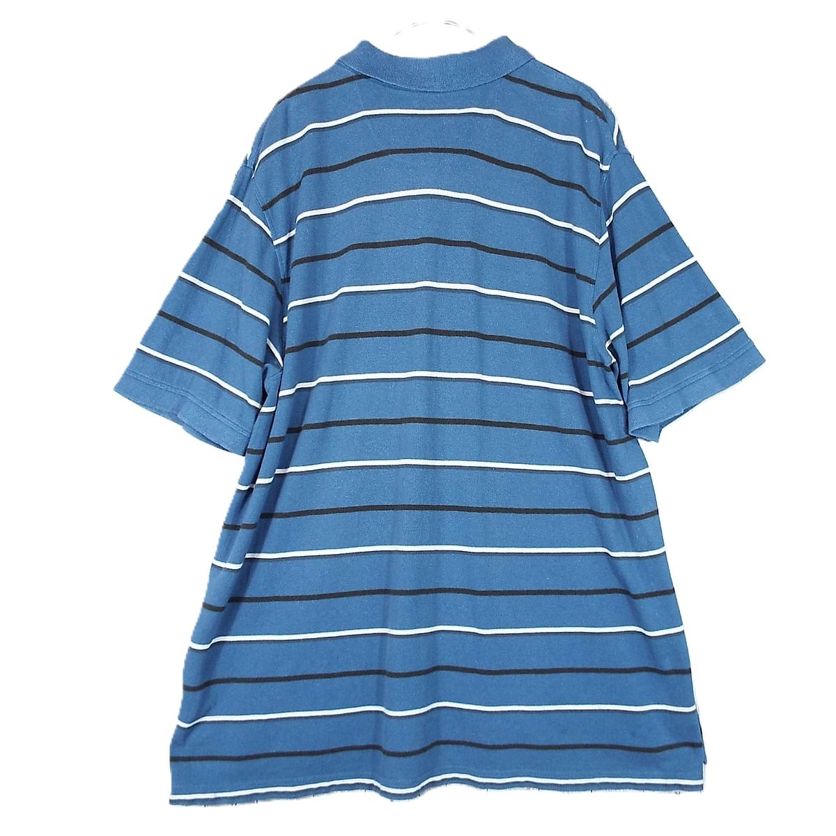 【大きいサイズ】インド製 FADED GLORY ストライプ柄 鹿の子 半袖ポロシャツ 2XL(XXL) ブルー【湘南倉庫】USメンズ古着 12342426|1-3|ゆるだぼ ビックシルエット