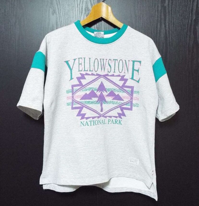 【世界遺産関連モノ】イエローストーン国立公園 デザイン 半袖 スウエット(裏毛)|グレー系|USサイズ:L(肩幅:57.5cm)US古着
