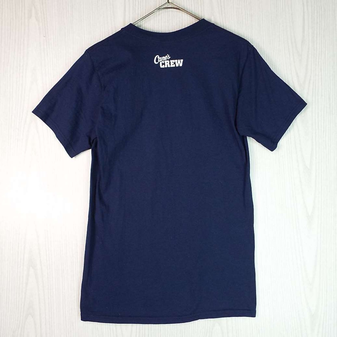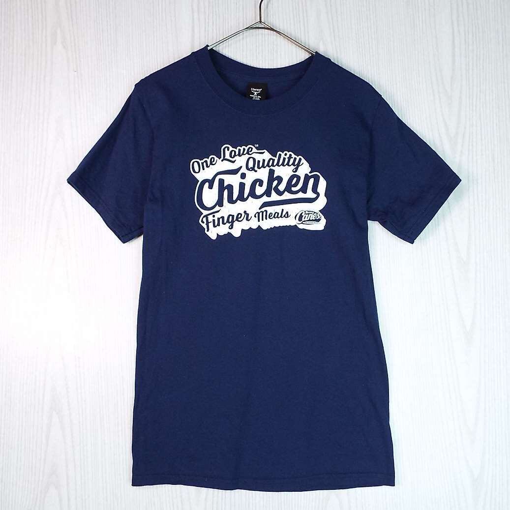 【企業ロゴTシャツ】レディースSサイズ|Hanes ヘインズ chicken fingers Cane's ひび割れプリント 半袖Tシャツ|ネイビー 海外古着 メンズ ユニセックス【湘南倉庫】