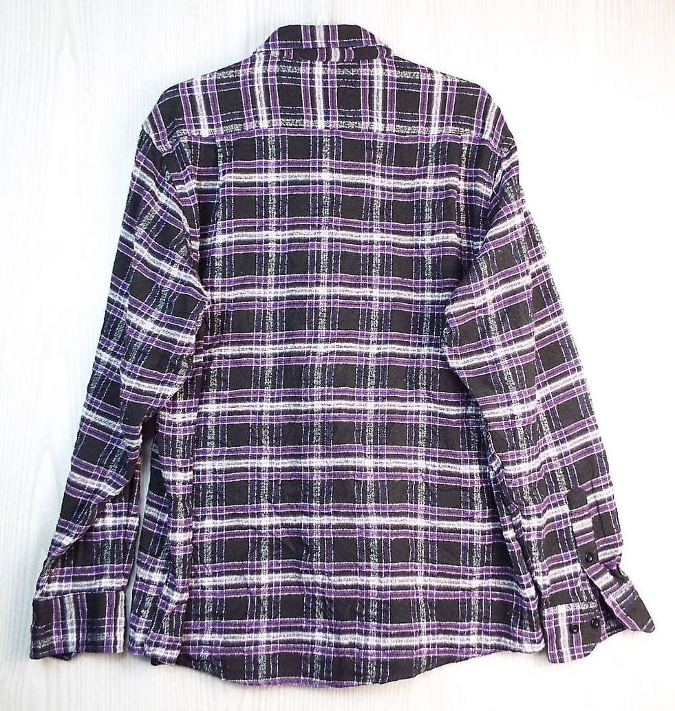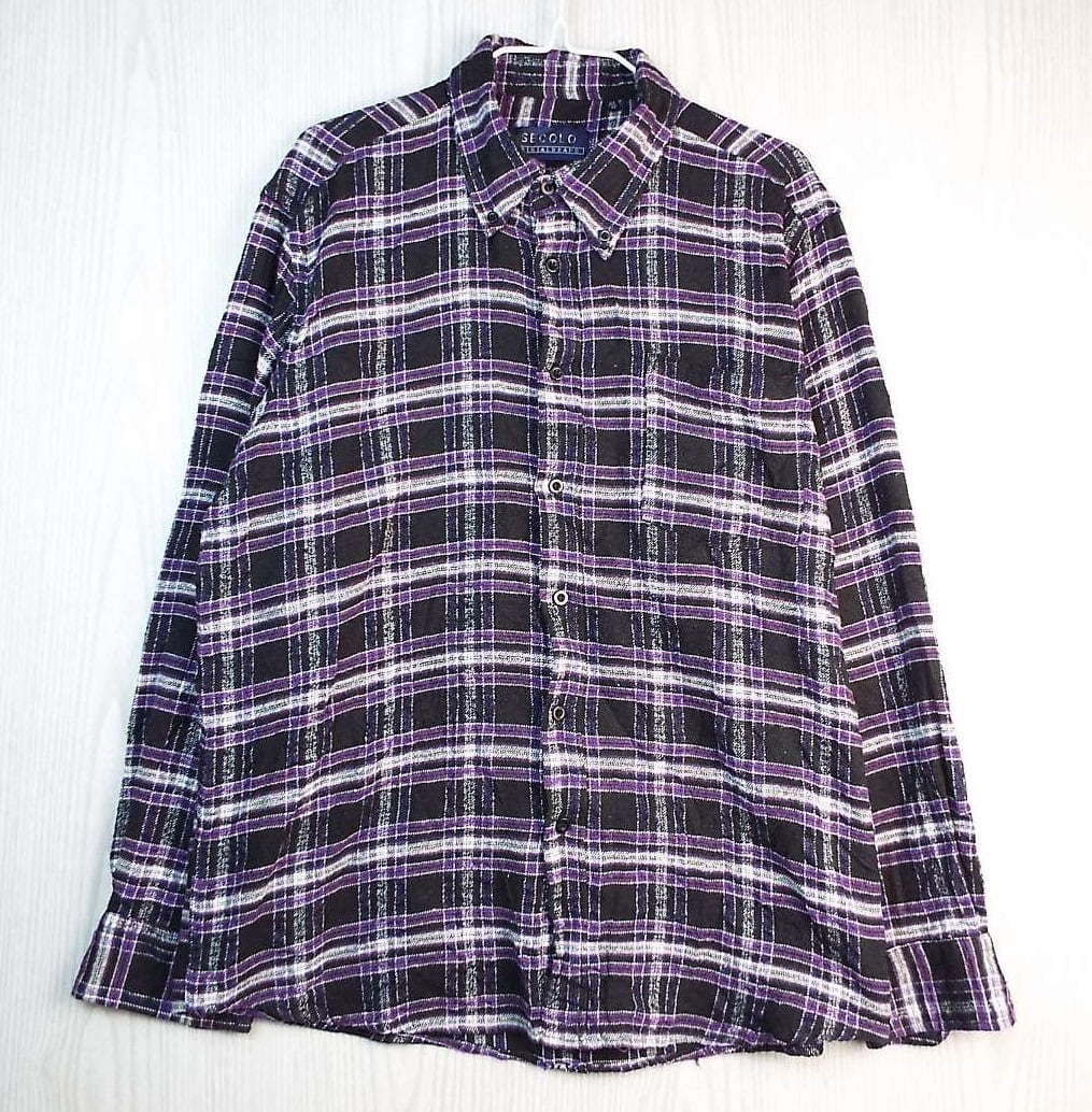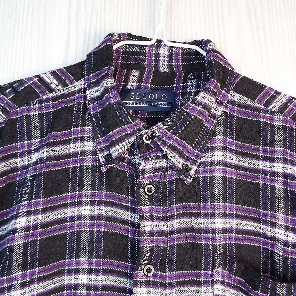 【オンブレシャツ】SECOLO セコロ ボタンダウン BD チェック柄 長袖 ネルシャツ Mサイズ(44)パープル・ブラック・ホワイト【湘南倉庫】US古着