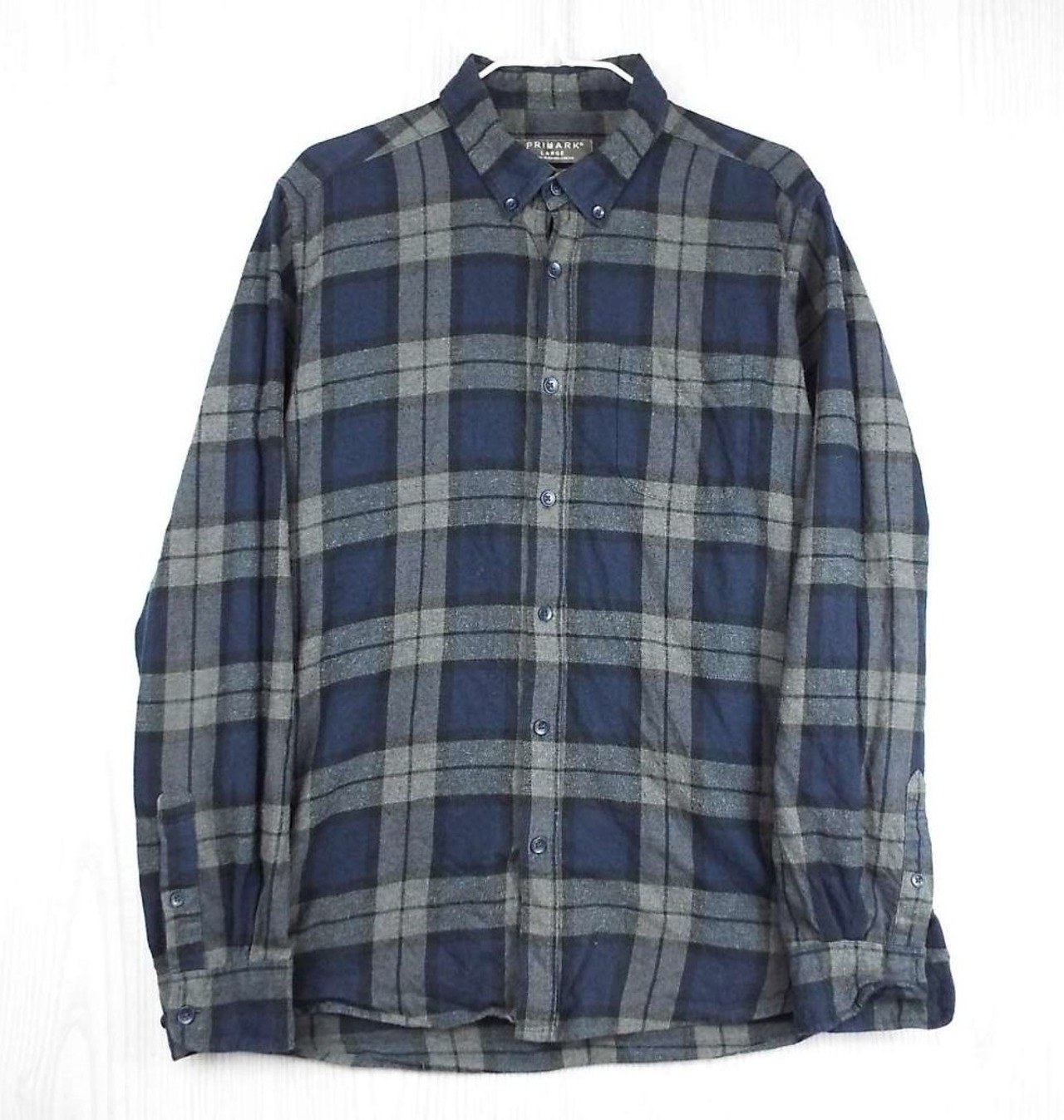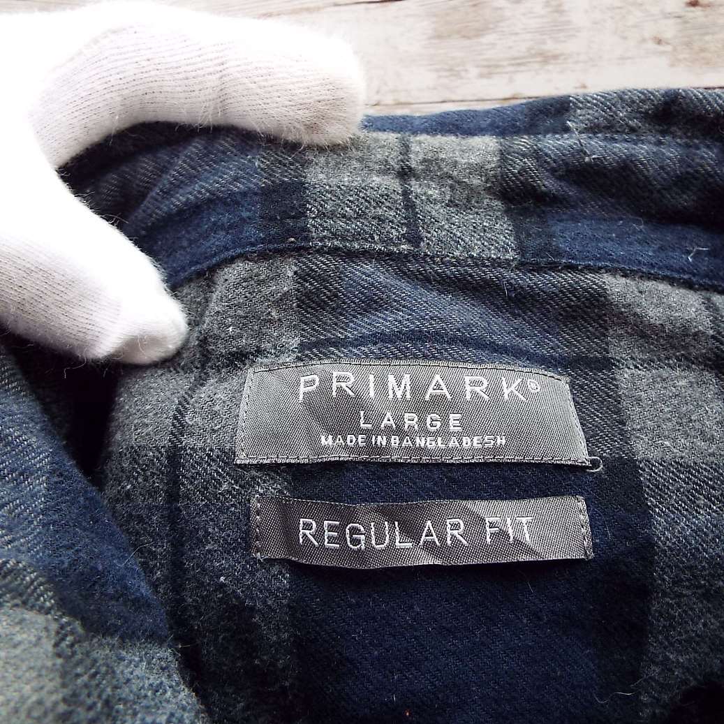 【ヨーロッパ古着】PRIMARK チェック柄 ボタンダウン BD 長袖ネルシャツ Lサイズ ネイビー・グレーク 【湘南倉庫】EU古着 オンブレ