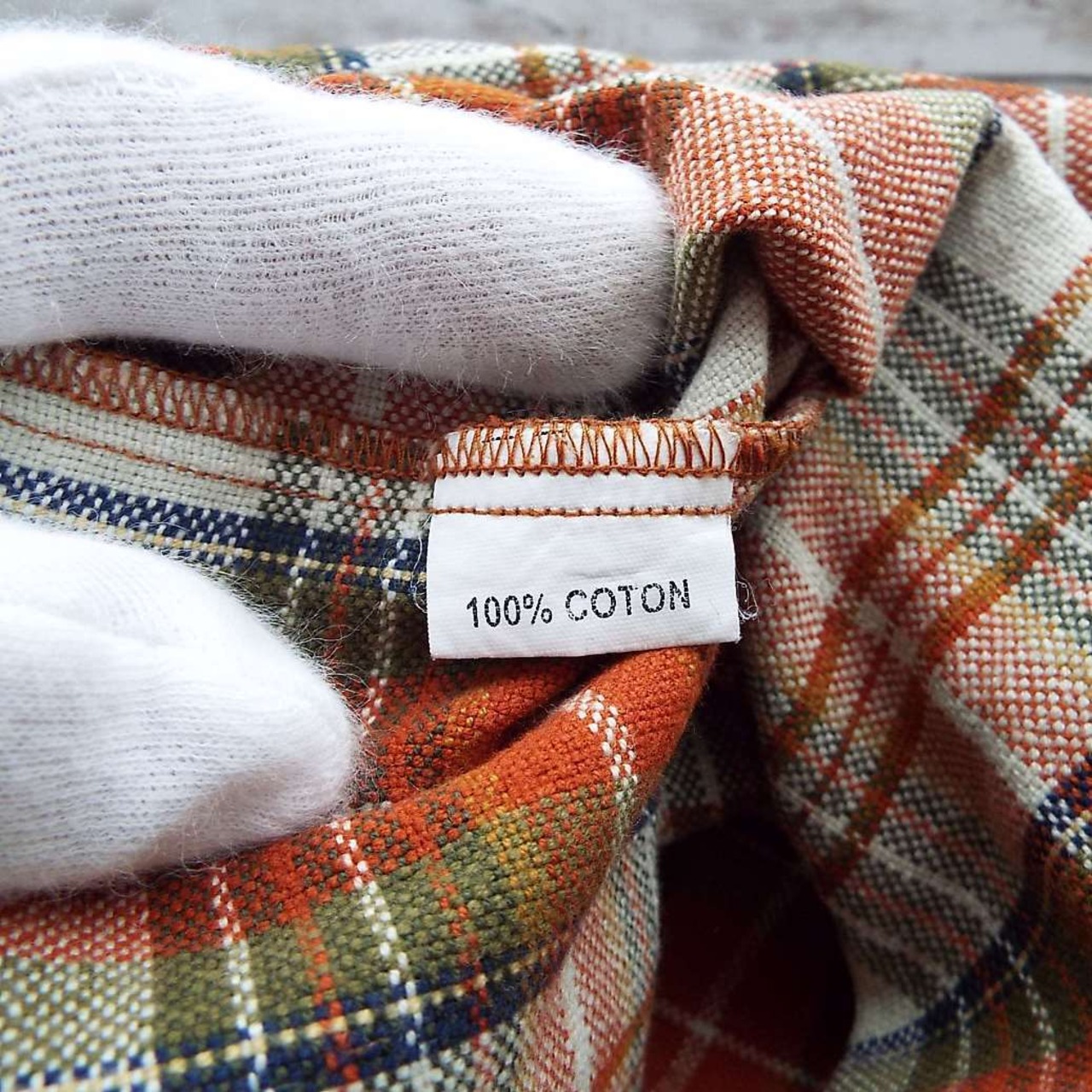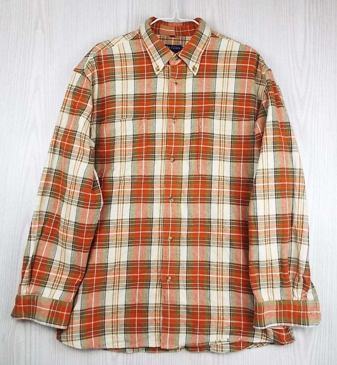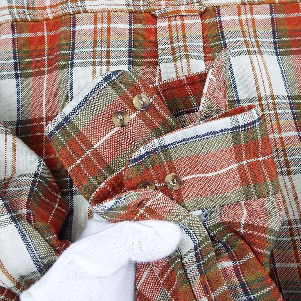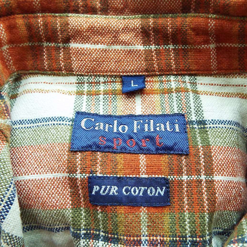 【ヨーロッパ古着】Carlo Filati Sport コットン100% チェック柄 ボタンダウン BD 長袖シャツ Lサイズ オフホワイト・オレンジ・ブラウン【湘南倉庫】EU古着 オンブレ