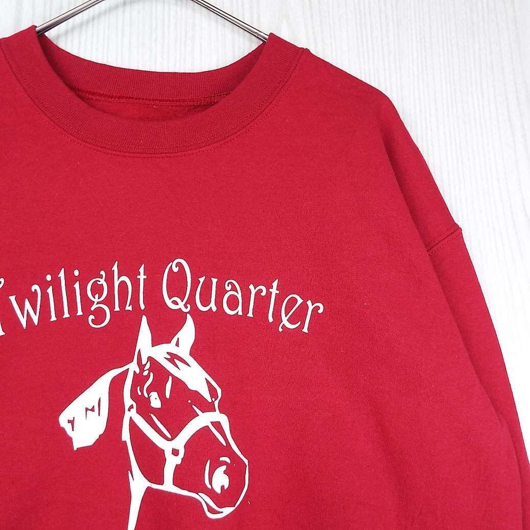 【アニマルデザイン】GILDAN Twilight Quarter Ranch est.2015 馬 ホース 長袖 スウェットトレーナー Mサイズ レッド赤 【仙台倉庫】競馬 USメンズ古着 12356034 競馬 乗馬
