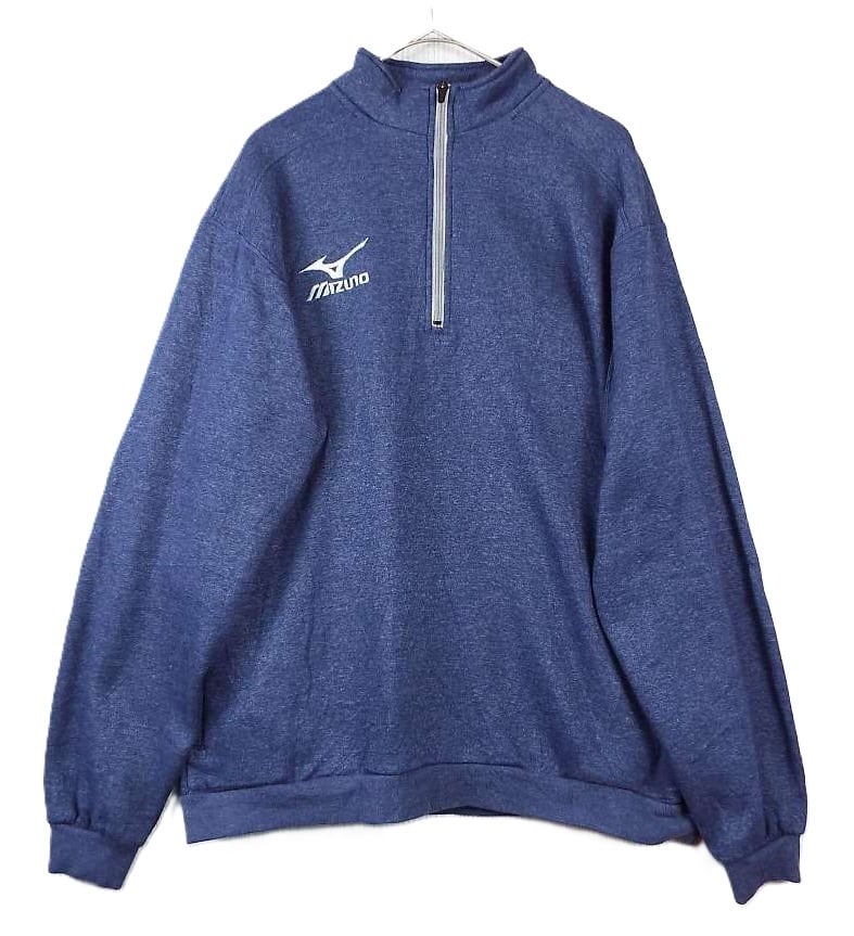 【アメリカ古着】MIZUNO PERFORMANCE ミズノパフォーマンス 裏フリース ハーフジップ スウェットトレーナー Lサイズ(肩幅55cm)霜降りブルーネイビー【仙台倉庫】USメンズ古着