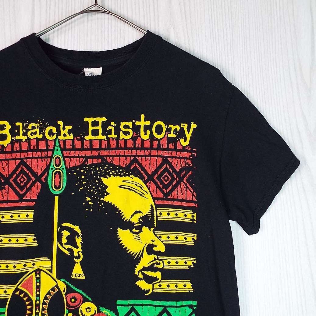 S/Pサイズ|GILDAN ギルダン Black History Month(BHM)黒人歴史月間 ラスタカラー民族 ビッグロゴ 100%コットン 半袖Tシャツ ブラック 海外古着【湘南倉庫】