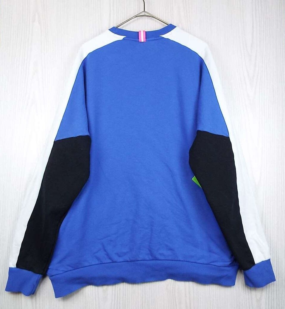 【80年代のゆるだぼデザイン】PUMA プーマ ワンポイントロゴ スウェット 長袖トレーナー XLサイズ(裄丈 89cm)ブルー・ライムグリーン・ホワイト【湘南倉庫】USメンズ古着 オーバーシルエット ビッグサイズ