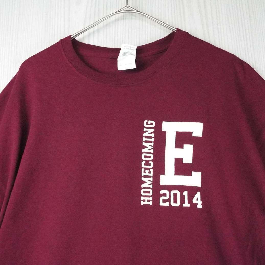 ☆肩幅58cm☆GILDAN ギルダン ELONHOME HOMECOMING 2014 両面プリント 半袖Tシャツ コットン100% ワインレッド 【湘南倉庫】USアメリカ古着 HEAVY COTTON T13
