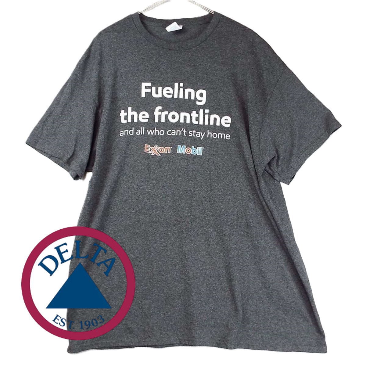 ☆肩幅57cm☆【エスソンモービル石油オリジナル】DELTA PRO WEIGHT デルタ・プロ・ウェイト EXXON Mobil 両面プリント 半袖Tシャツ グレー コットン・ポリエステル混紡(50/50) 【湘南倉庫】USアメリカ古着 T13
