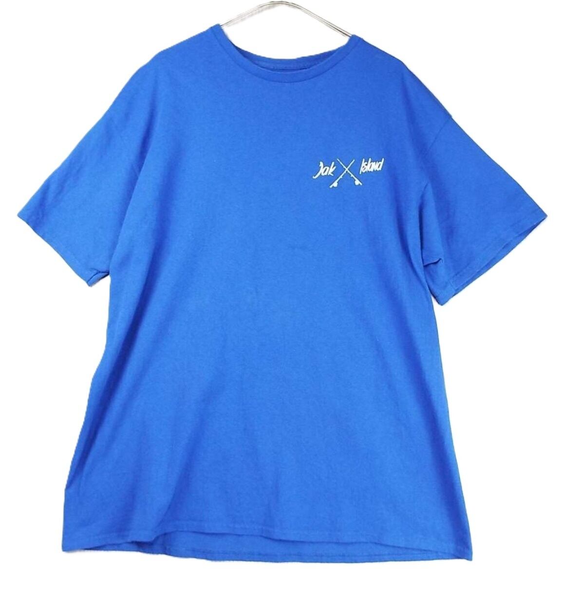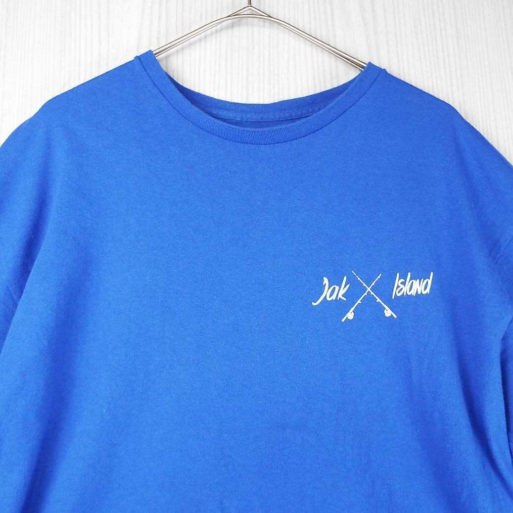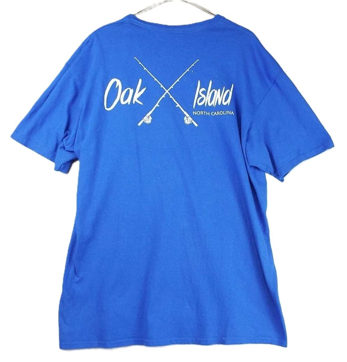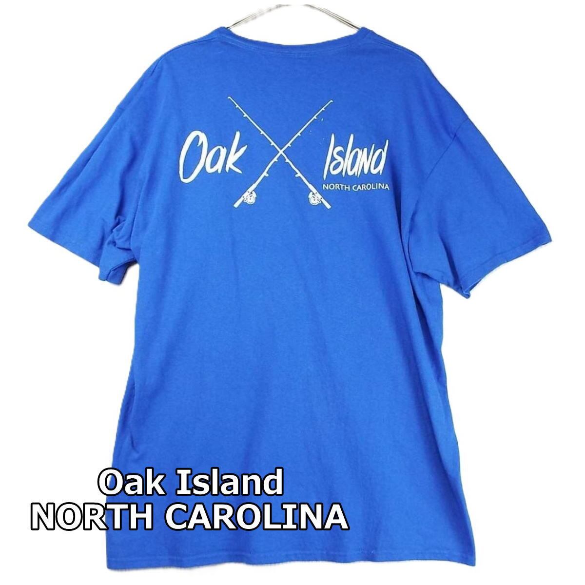☆肩幅56.5cm☆【フィッシング】Oak Island NORTH CAROLINA ノースカリフォルニア 釣り竿 ロッド リール 両面プリント 半袖Tシャツ XLサイズ ブルー 【湘南倉庫】USアメリカ古着 T13