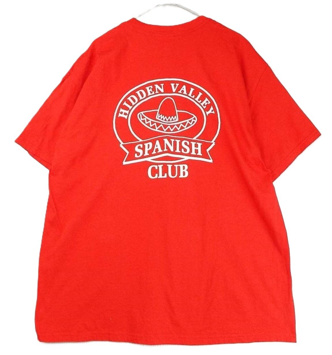 ☆肩幅58cm☆【00年代】GILDAN ギルダン HIDDEN VALLEY HIGH SCHOOL SPANISH CLUB メキシカンハット スパニッシュ両面プリント 半袖Tシャツ XLサイズ コットン100% レッド 【湘南倉庫】USアメリカ古着 ゆるだぼ T13