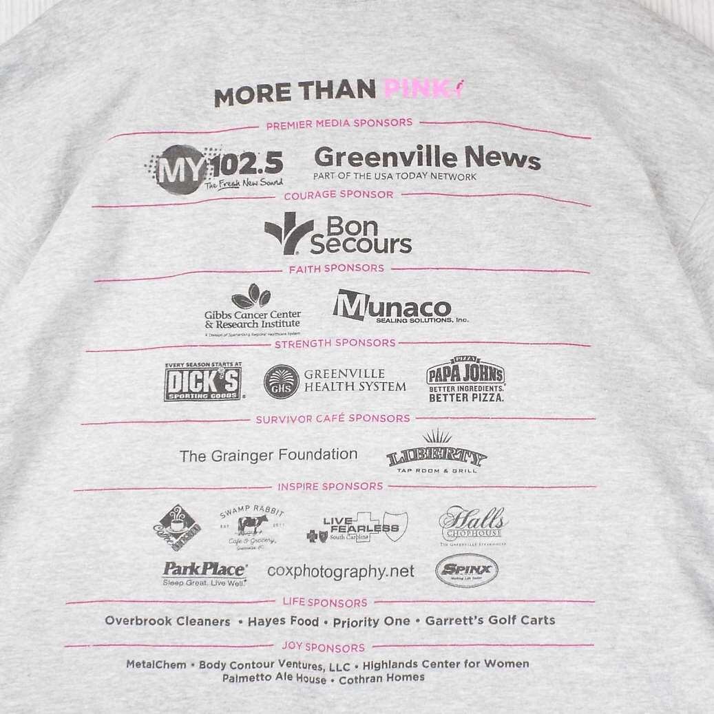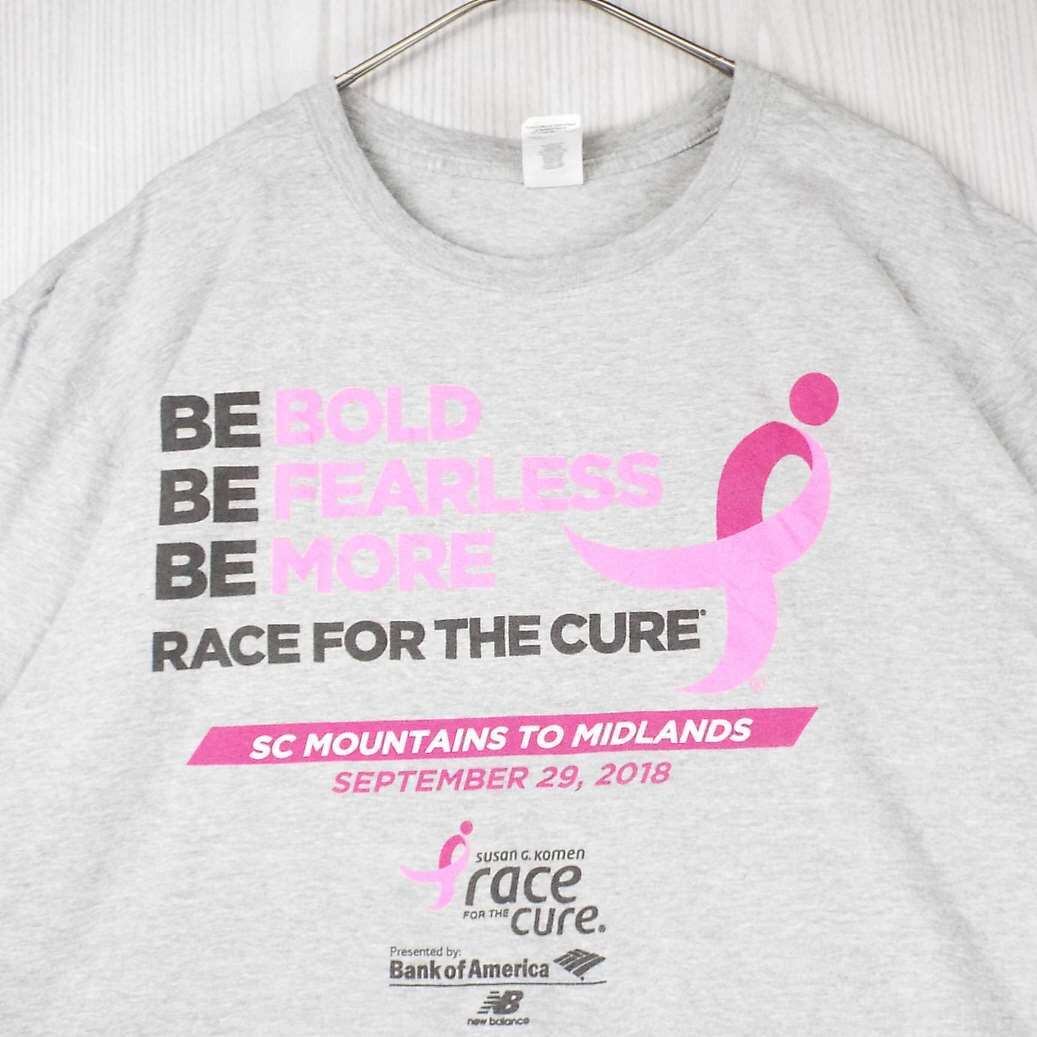 【XLサイズ】GILDAN BE BOLD BE FEARLESS BE MORE ピンクリボン 企業 両面プリント コットン混 半袖Tシャツ ライトグレー GILDAN ギルダン 海外古着 【湘南倉庫】ビッグサイズ