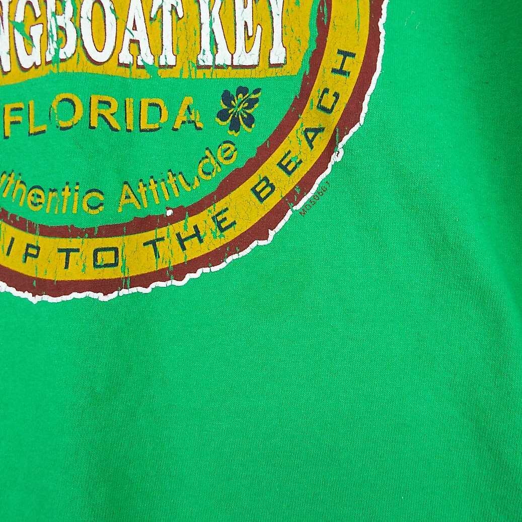 《☆肩幅64cm☆》【ネイティブアメリカン】FRUIT OF THE LOOM LONG BOAT KEY FRORIDA 前プリ 袖ロゴ 半袖Tシャツ 2XLサイズ コットン100% グリーン 【湘南倉庫】USアメリか古着 ゆるだぼ