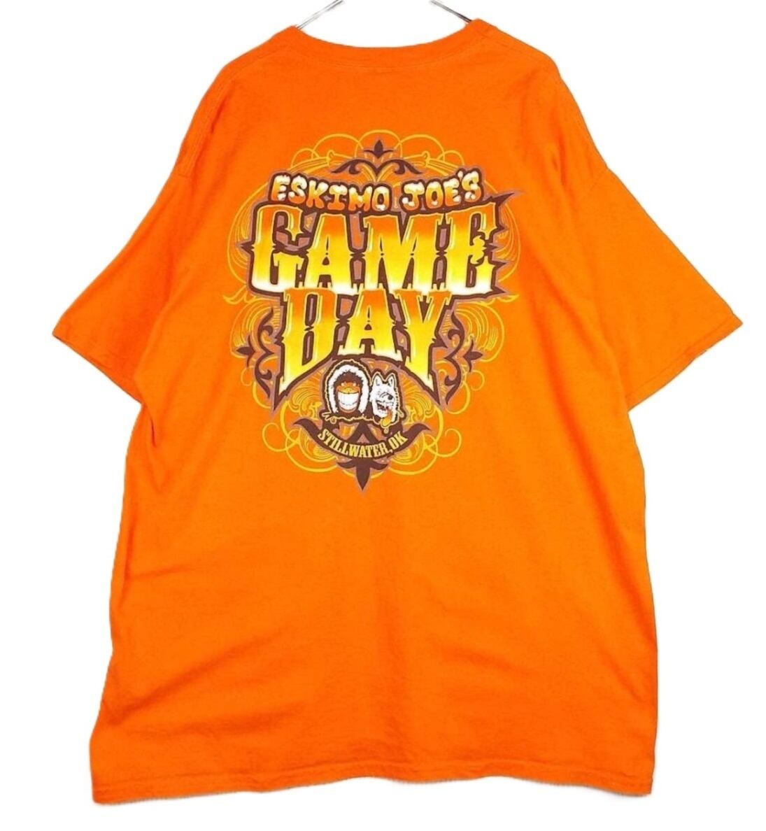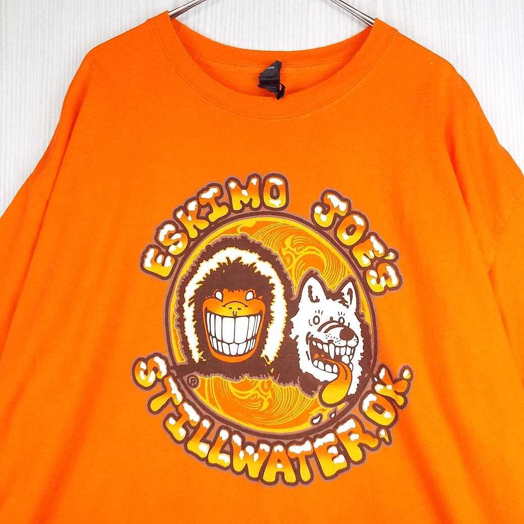 ☆肩幅59cm☆【キャラクター】HANES ヘインズ ESKIMO JOE’S エスキーモージョーズ 両面ラバープリント 半袖Tシャツ 2XLサイズ コットン100% オレンジ 【湘南倉庫】USメンズ古着 T10
