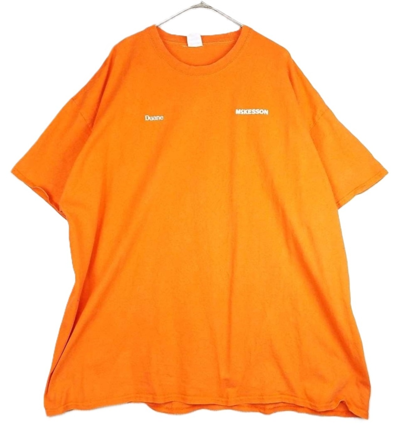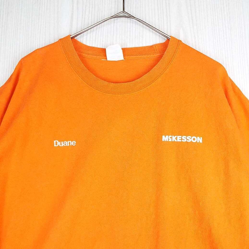 ☆肩幅64cm☆【ビビットカラー】PORT and COMPANY ポートアンドカンパニー McKESSON 胸ロゴ 刺繍ロゴ 半袖Tシャツ 3XLサイズ オレンジ コットン100%【湘南倉庫】USメンズ古着 ゆるだぼ T10