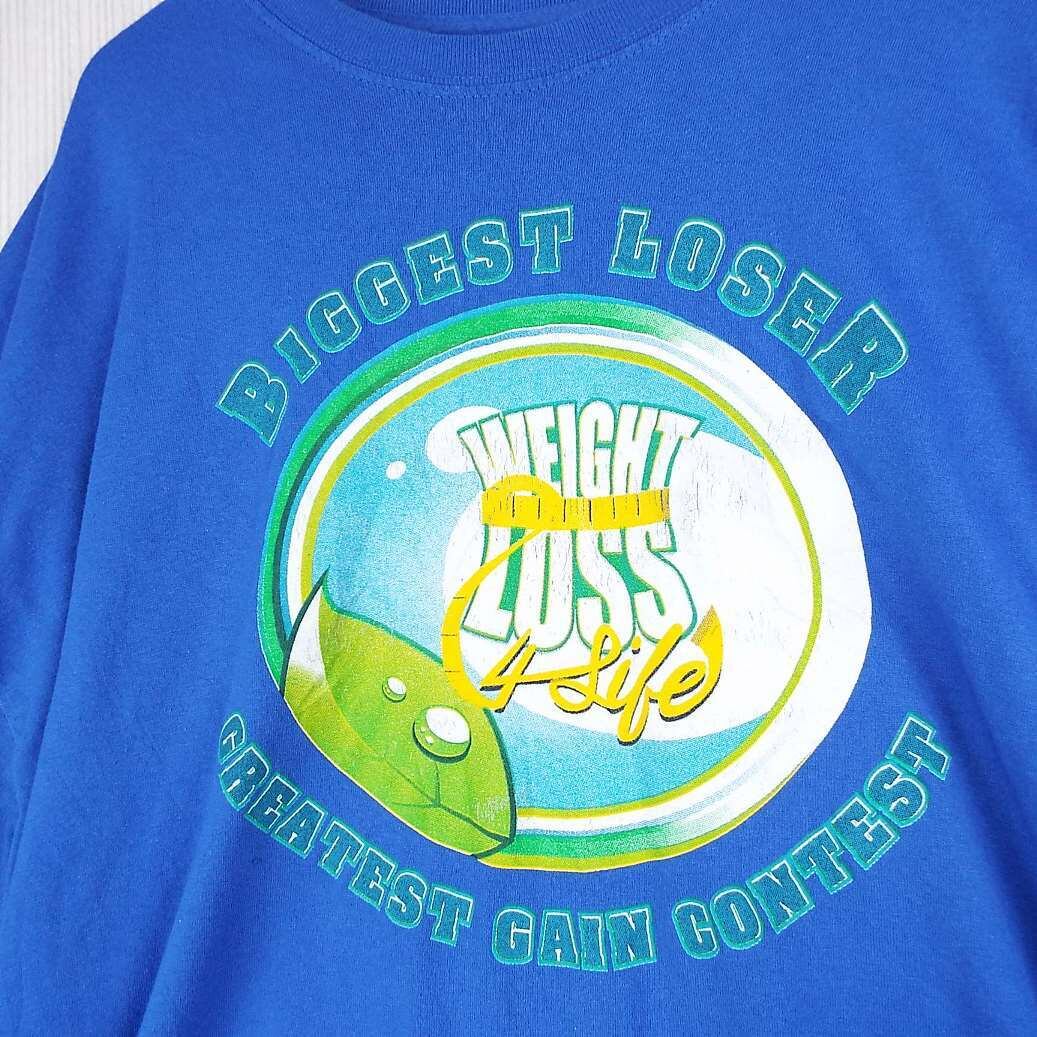 《☆肩幅62cm☆》BIGGEST LOSER GREATEST GAIN CONTEST ラバープリント 両プリント 半袖Tシャツ 2XLサイズ ブルー【湘南倉庫】USアメリカ古着 ビッグサイズ ゆるだぼ