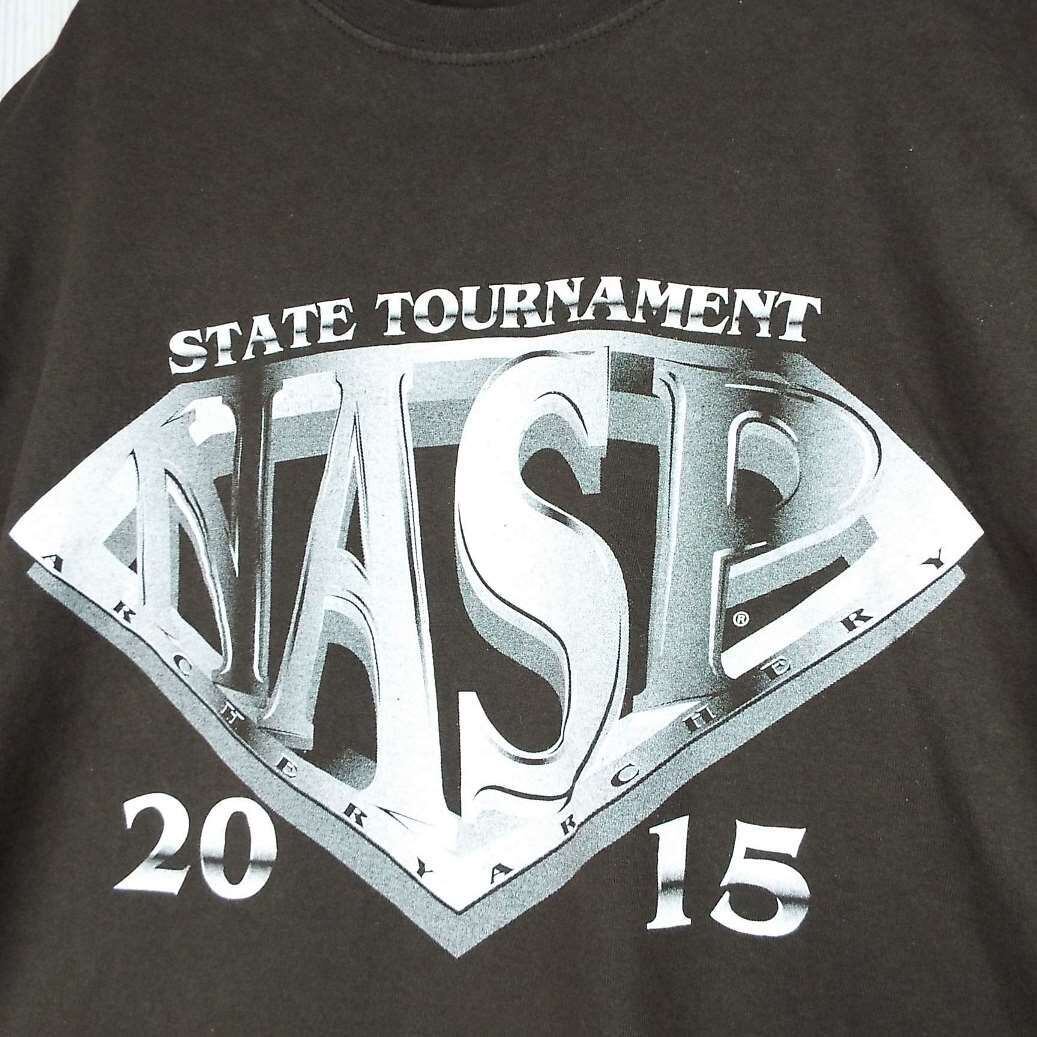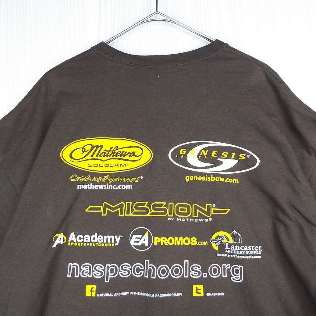 ☆肩幅62cm☆【大会記念/企業ロゴ】GILDAN ギルダン STATE TOURNAMENT ARCHERY 2015 アーチュリー 両面プリント 半袖Tシャツ 2XLサイズ コットン100% ブラウン【湘南倉庫】USアメリカ古着 ビッグサイズ HEAVY COTTON