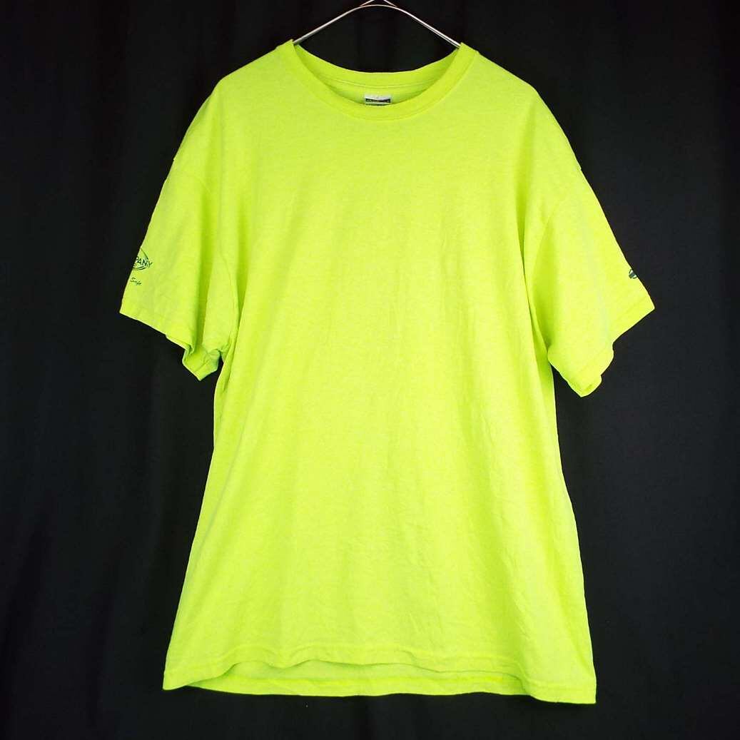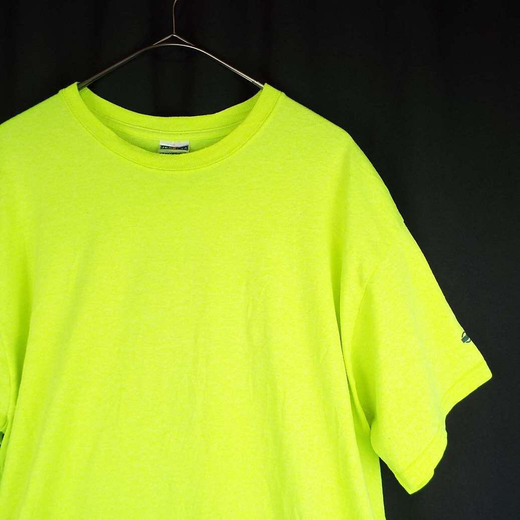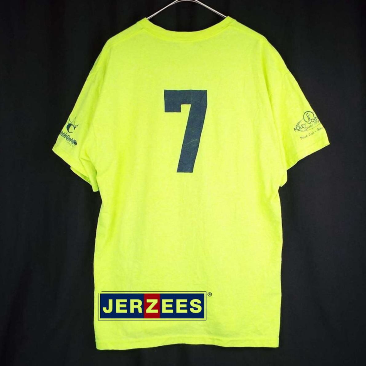 ☆肩幅52.5cm☆【背番号7】JERZEES ジャージーズ CALLEGRI CONSTRUCTION ナンバリング 袖プリ バックプリント 半袖Tシャツ XLサイズ ライムイエロー コットン・ポリエステル(50/50)【湘南倉庫】USアメリカ古着 T11 4912345006714