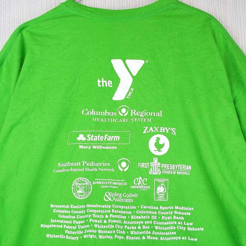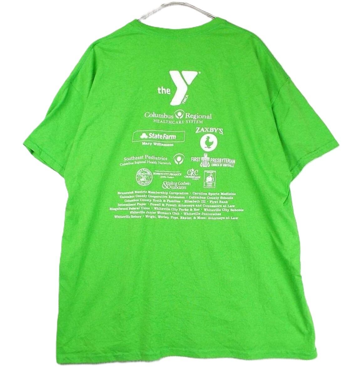 【肩幅58cm】【YMCA公式】GILDAN ギルダン Girls on the run theY® マラソン大会記念 企業ロゴ 両面プリント 半袖Tシャツ XLサイズ コットンポリエステル(50/50) グリーン【湘南倉庫】USアメリカ古着 ゆるだぼ DryBlend