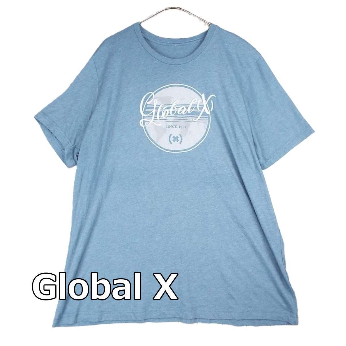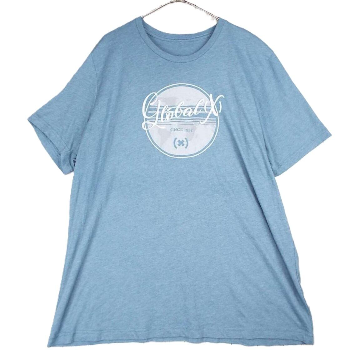 【肩幅46cm】UN KNOWN Global(X)since 1997 世界地図 サークルロゴ 両面プリント 企業 半袖Tシャツ ブルーグレー 【湘南倉庫】USアメリカ古着
