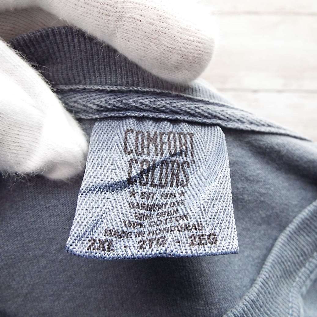 【肩幅61cm】COMFORT COLORS コンフォートカラーズ TACKLE Breast Cancer 2020 ラグビーボール 袖ロゴ プリント 半袖Tシャツ 2XLサイズ グレー コットン100% 【湘南倉庫】USアメリカ古着 ゆるだぼ