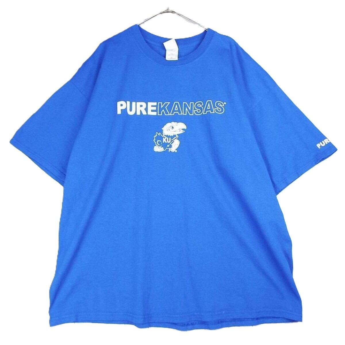 【肩幅63cm】【90-00年代】GILDAN ギルダン PURE KANSAS KU カンサスシティ大学 カレッジロゴ キャラクター 袖ロゴ 前プリ 半袖Tシャツ 2XLサイズ ブルー コットン100% 【湘南倉庫】USアメリカ古着 ULTRA COTTON
