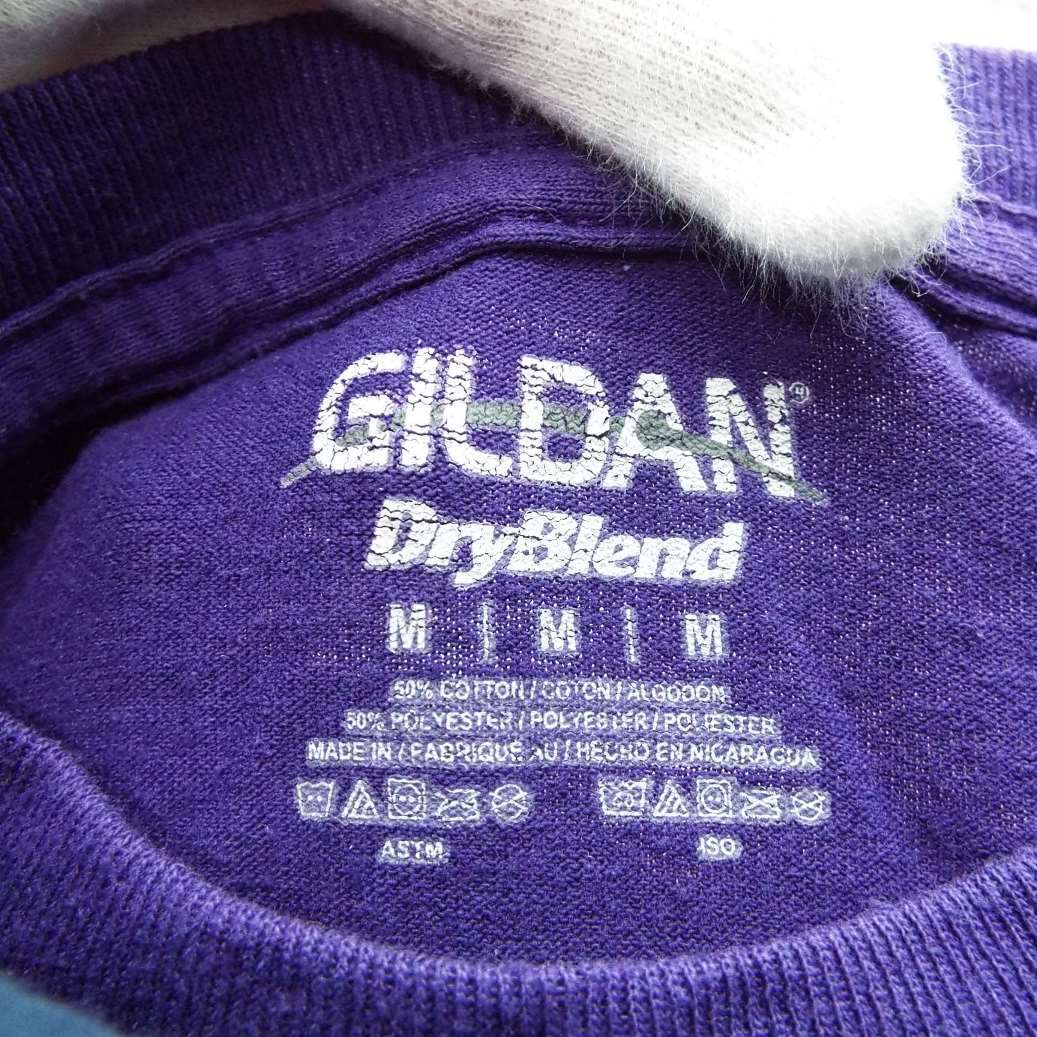 【肩幅47cm】【天使と悪魔】GILDAN ギルダン WHICH ONE WILL GIDE MY JEEP TODAY エンジェル デビル 両面プリント 半袖Tシャツ Mサイズ パープル コットンポリエステル(50/50) 【湘南倉庫】USアメリカ古着 DryBlend