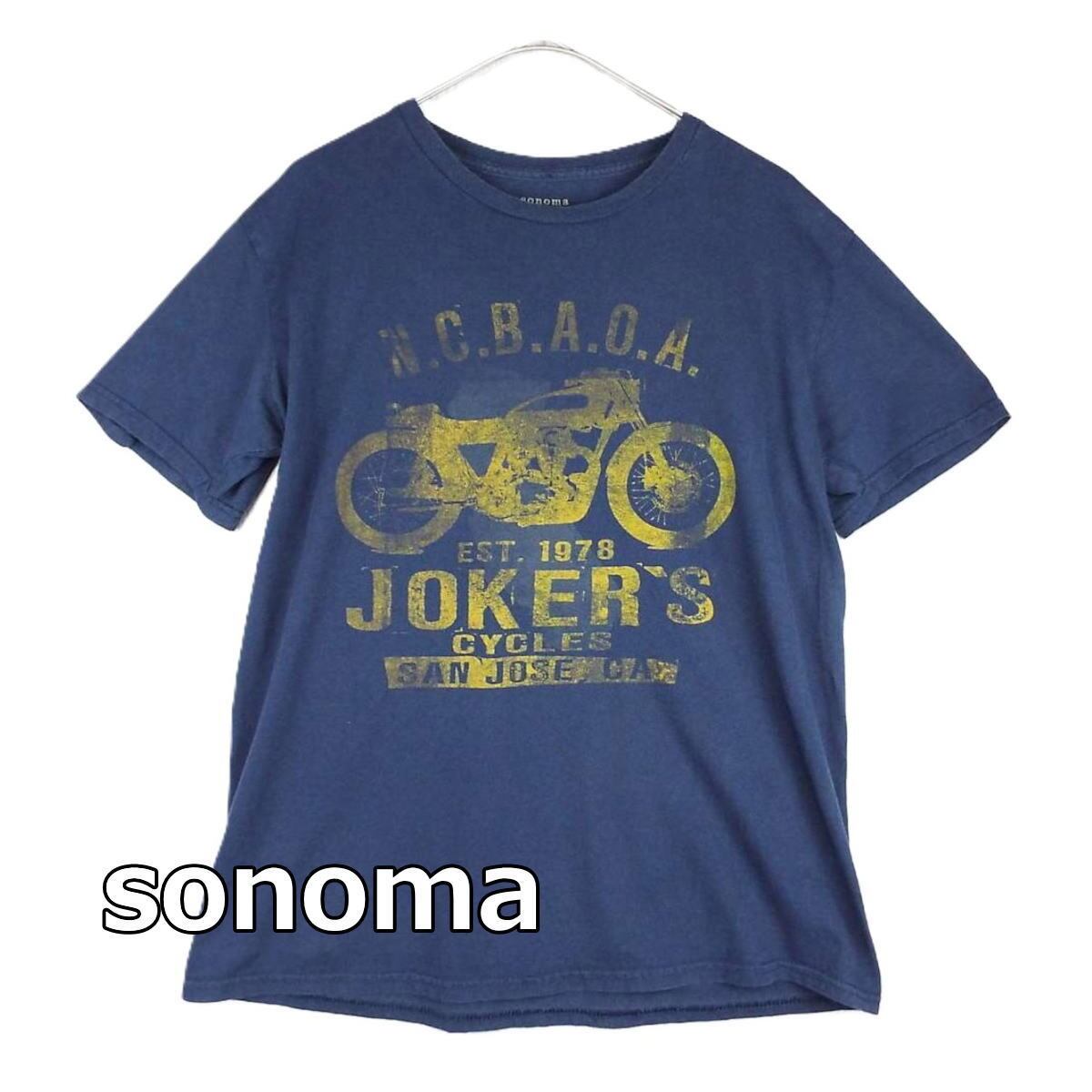 【肩幅45cm】【オートバイ】sonoma ソノマ JORKER’S CYCLES SAN JOSE CA オールドバイク ヴィンテージテイスト プリント 半袖Tシャツ Mサイズ ネイビー コットン100%【湘南倉庫】USアメリカ古着 T16