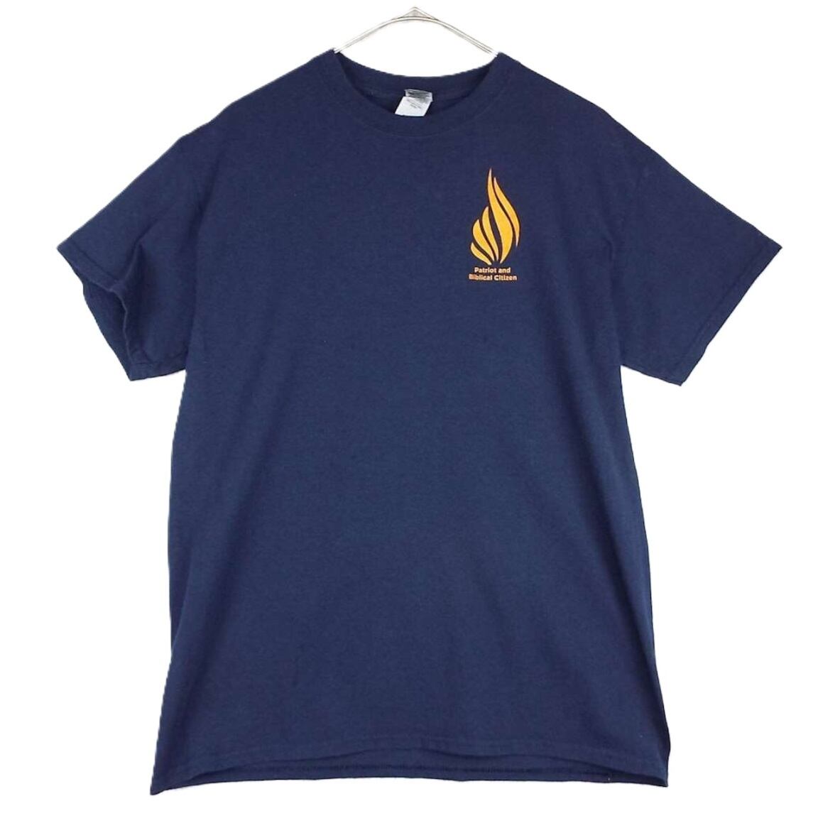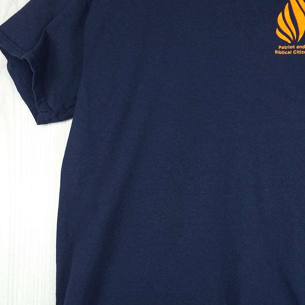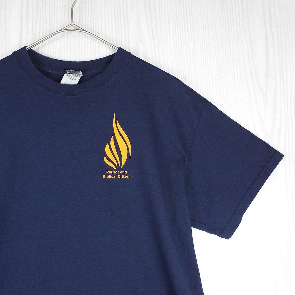 【肩幅46.5cm】【胸ロゴ】GILDAN ギルダン Patriot and Biblical Citizen 企業系 グラフィック プリント 半袖Tシャツ Mサイズ コットン100% ネイビー 【湘南倉庫】USアメリカ古着 ULTRA COTTON T16