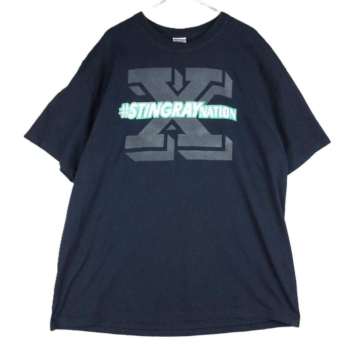 【肩幅57cm】【00年代】GILDAN ギルダン #STINGRAYNATION ハンドサイン ラメ ビッグロゴ 両面プリント 半袖Tシャツ XLサイズ コットン100% ブラック 【湘南倉庫】ULTRA COTTON T17
